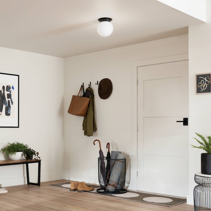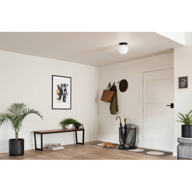 The Albers 1 light flush mount illuminates on its own or in multiples. Its refined black finish complements many design styles. It comes with a globe-shaped opal glass shade.