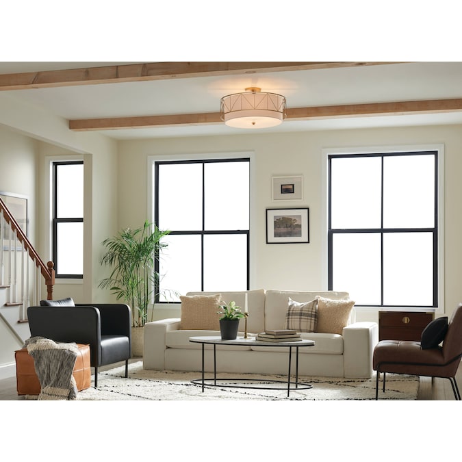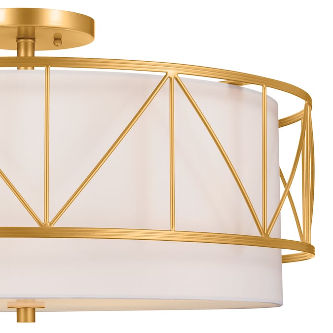 The Birkleigh 24-inch semi flush with white fabric shade and satin etched glass features a simple metal geometric overlay pattern that adds dimension and visual interest with its Classic Gold finish. The satin etched glass provide a beautiful, ambient lighting to the entire room. A perfect addition in several aesthetic environments, including traditional and modern. Birkleigh is safety rated cETLus dry for indoor, dry spaces. To clean, simply wipe with a damp cloth.