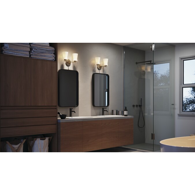 - The Brianne™ 2 light vanity makes luxury fun: its backplate was inspired by the starburst clocks of mid-century design