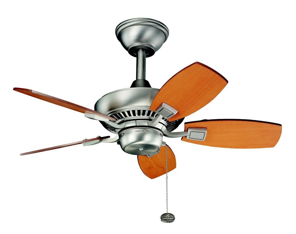 The Canfield 30 inch 5 blade fan features Oil Brushed Bronze finish and reversible Walnut and Cherry blades and reflects a classic aesthetic perfect in a traditional or transitional style environments. Clean metal components with a soft cloth moistened with a mild liquid soap solution. Wipe clean and buff with a very soft dry cloth. Under no circumstances should any metal polish be used, as its abrasive nature could damage the protective finish placed on the metal parts. Never wash glass shades in an automatic dishwasher. Instead, line a sink with a towel and fill with warm water and mild liquid soap. Wash glass with a soft cloth, rinse and wipe dry.