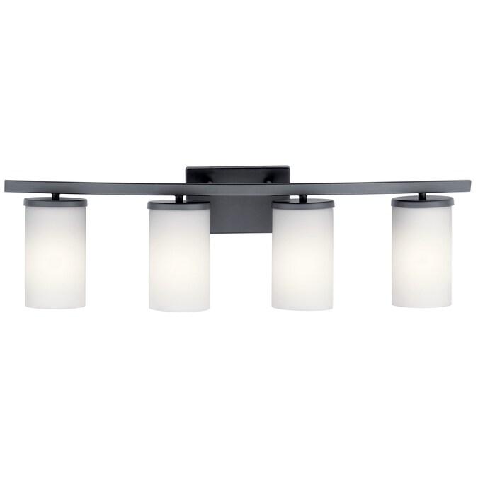 Streamlined and simple, This Crosby 4 light bath light in Black delivers clean lines for a contemporary style. The Satin Etched Cased Opal shades enhance this minimalistic design. Warranty is one (1) year from the date of purchase. Cleaning instructions: Be certain the electric current is turned off before cleaning. Clean metal components with a soft cloth moistened with a mild liquid soap solution. Wipe clean and buff with a very soft dry cloth. Under no circumstances should any metal polish be used, as its abrasive nature could damage the protective finish placed on the metal parts. Never wash glass shades in an automatic dishwasher. Instead, line a sink with a towel and fill with warm water and mild liquid soap. Wash glass with a soft cloth, rinse and wipe dry.