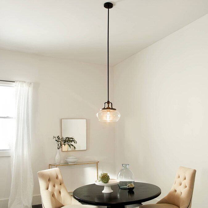 The Davenport 10.5-in 1 light convertible pendant or semi flush features Olde Bronze® and clear glass giving you two distinct lighting options within one fixture. The Dalwood convertible fixture is perfect in a transitional environment. Warranty is one (1) year from the date of purchase. Cleaning instructions: Be certain the electric current is turned off before cleaning. Clean metal components with a soft cloth moistened with a mild liquid soap solution. Wipe clean and buff with a very soft dry cloth. Under no circumstances should any metal polish be used, as its abrasive nature could damage the protective finish placed on the metal parts. Never wash glass shades in an automatic dishwasher. Instead, line a sink with a towel and fill with warm water and mild liquid soap. Wash glass with a soft cloth, rinse and wipe dry.