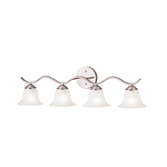 The Dover™ 30.5-in 4 light vanity light features a transitional look with gentle curves in Brushed Nickel finish and etched seeded glass. The Dover vanity light is perfect in several aesthetic environments including transitional and traditional. Warranty is one (1) year from the date of purchase. Cleaning instructions: Be certain the electric current is turned off before cleaning. Clean metal components with a soft cloth moistened with a mild liquid soap solution. Wipe clean and buff with a very soft dry cloth. Under no circumstances should any metal polish be used, as its abrasive nature could damage the protective finish placed on the metal parts. Never wash glass shades in an automatic dishwasher. Instead, line a sink with a towel and fill with warm water and mild liquid soap. Wash glass with a soft cloth, rinse and wipe dry.