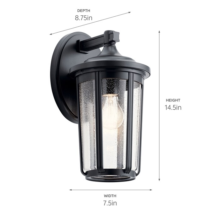 The 14.5 inch 1 light outdoor wall light with clear seeded glass and Black finish offers a modern take on a traditional outdoor lantern. This beautiful outdoor wall light fits nicely with traditional architectural styles, making it the perfect piece for your home. Warranty is one (1) year from the date of purchase. Cleaning instructions: Turn off electric current before cleaning. Clean metal components with a soft cloth moistened with a mild liquid soap solution. Wipe clean and buff with a very soft dry cloth. Under no circumstances should any metal polish be used, as its abrasive nature could damage the protective finish placed on the metal parts. Never wash glass shades in an automatic dishwasher. Instead, line a sink with a towel and fill with warm water and mild liquid soap. Wash glass with a soft cloth, rinse and wipe dry.