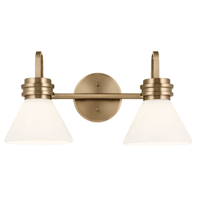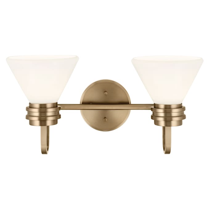 With its refined shape, the Farum 2 light vanity complements many bathroom styles. Its clean frame showcases subtle stepped detailing and its Opal glass wonderfully illuminates. In champagne bronze, it’s on-trend.
