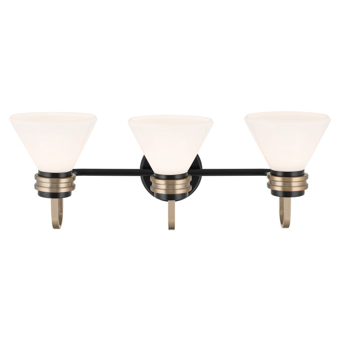 With its refined shape, the Farum 3 light vanity complements many bathroom styles. Its clean frame showcases subtle stepped detailing and its Opal glass wonderfully illuminates. The black with champagne bronze combination is on-trend.