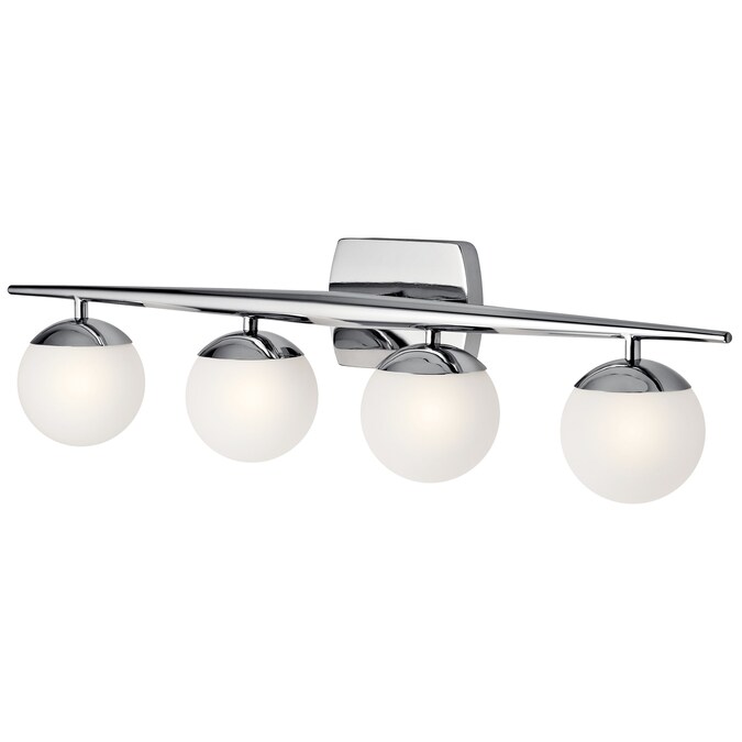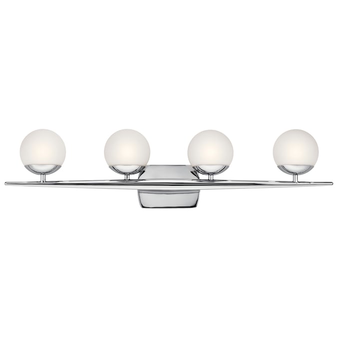 The Jasper 4 Light halogen vanity Light in Chrome finish epitomizes the sophistication of mid century style. Measuring 32.25″ wide and 7.75″ tall with satin etched opal glass globes, this versatile fixture delivers the vivid illumination needed in your powder room or bathroom with elegance to match. Complete the look with 50 watt (max.) Bulbs. Cleaning instructions: turn off electric current before cleaning. Clean metal components with a soft cloth moistened with a mild liquid soap solution. Wipe clean and buff with a very soft dry cloth. Under no circumstances should any metal polish be used, as it is abrasive nature could damage the protective finish placed on the metal parts. Never wash glass shades in an automatic dishwasher. Instead, line a sink with a towel and fill with warm water and mild liquid soap. Wash glass with a soft cloth, rinse and wipe dry.