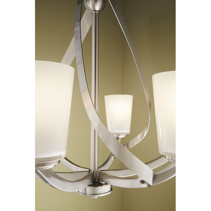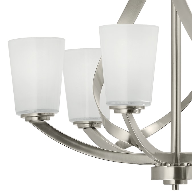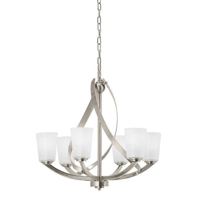 - Brushed nickel finish chandelier from the Layla collection is a transitional classic