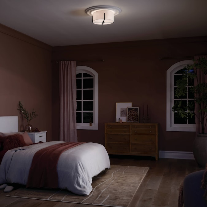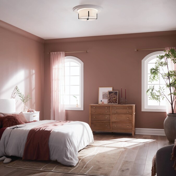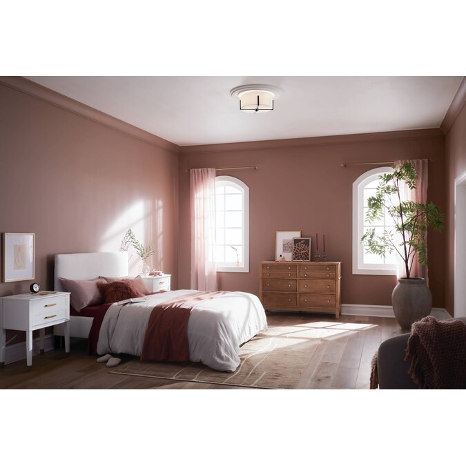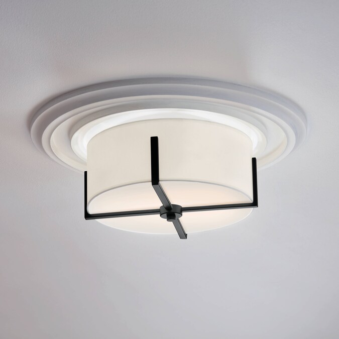 Inspired by the notion of holding and resting, the Malen flush mount is sheer elegance. Its fabric shade nestles into refined black metal uprights. Its satin etched white painted glass bottom softens the light as it illuminates your space.