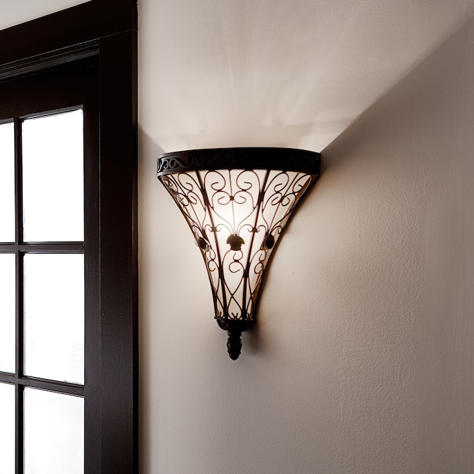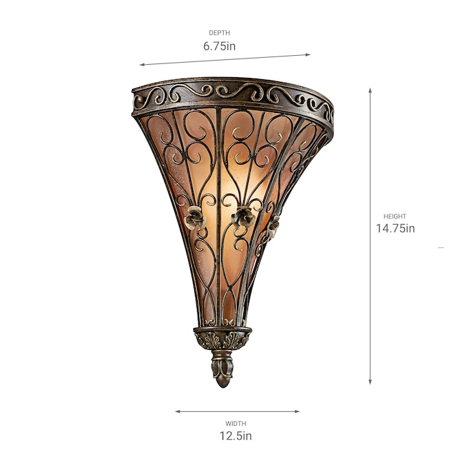 The Marchesa™ wall sconce features European inspired silhouettes cast in a soft Terrene Bronze finish. The ornamental basket design is intricately detailed with swirling textures and botanical accents. Make a dramatic statement with this 1 light wall sconce with Piastra glass. Warranty is one (1) year from the date of purchase. Cleaning instructions: wipe clean with a damp cloth.