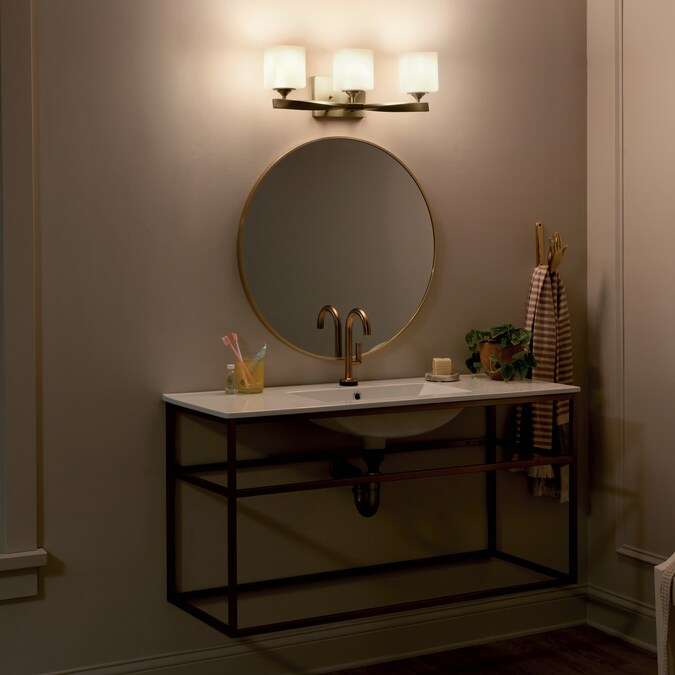 The Marette 23 inch 3 light vanity light with satin etched cased opal glass and twisted arm in champagne bronze finish. The satin etched cased opal glass provides a beautiful, ambient lighting to the entire room. A perfect addition in several aesthetic environments, including traditional, transitional and modern. The Marette Collection is safety rated cETLus damp for indoor damp locations. To clean, simply wipe with a damp cloth.