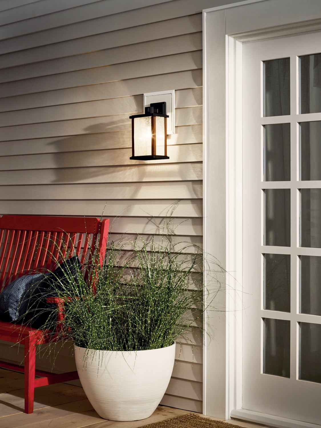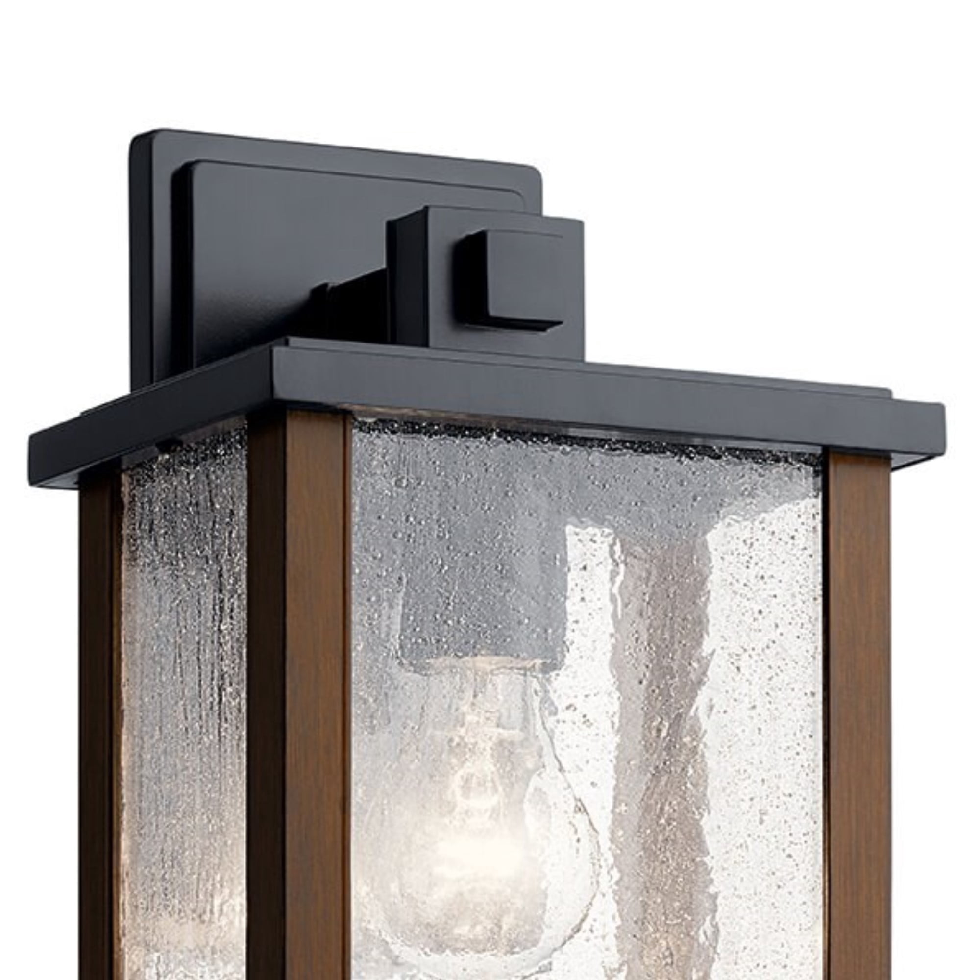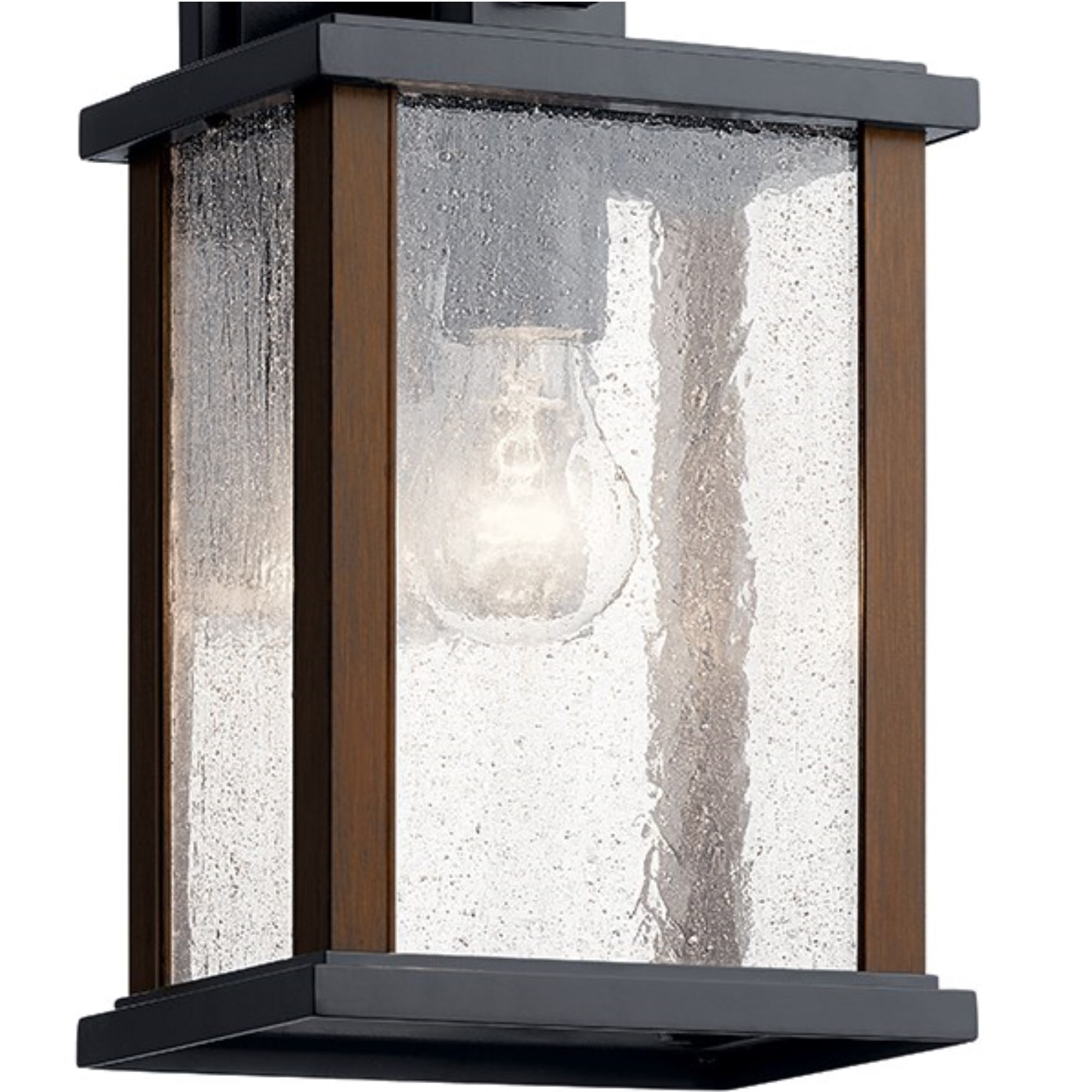 The Marimount 12.75 in. Outdoor Wall Light with Clear Ribbed Glass in Black from Kichler makes for the perfect outdoor lighting solution. Constructed from sturdy aluminum, this wall light ensures long-lasting durability. Its wood-style detail blends exceptionally well with both traditional and rustic decor styles, among others. The clear ribbed glass of the fixture provides soothing ambient lighting to your entryway, porch or patio. With its highly durable coating, this fixture can withstand weather elements such as rain, snow or direct exposure to the sun.