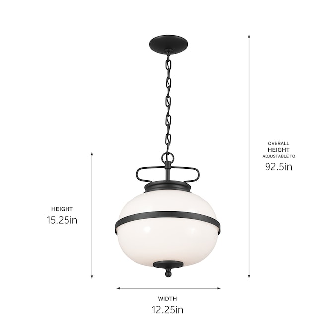 - Fixture measures 12.2-in diameter x 15.1-in height and can be adjusted to hang up to 92.5-in