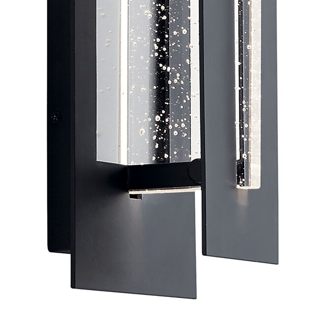 - The River Path LED outdoor wall light features a Textured Black finish and clear seeded glass