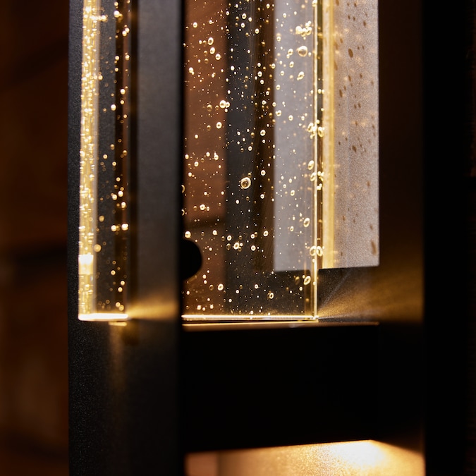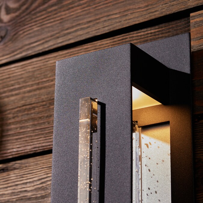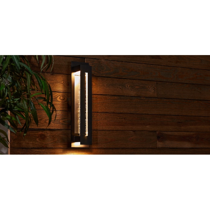 The River Path™ 23-in outdoor LED wall light features a contemporary look with its clear seeded glass and Textured Black finish. The River Path wall light works in several aesthetic environments, including modern and transitional. Warranty is one (1) year from the date of purchase. Cleaning instructions: Be certain the electric current is turned off before cleaning. Clean metal components with a soft cloth moistened with a mild liquid soap solution. Wipe clean and buff with a very soft dry cloth. Under no circumstances should any metal polish be used, as its abrasive nature could damage the protective finish placed on the metal parts. Never wash glass shades in an automatic dishwasher. Instead, line a sink with a towel and fill with warm water and mild liquid soap. Wash glass with a soft cloth, rinse and wipe dry.