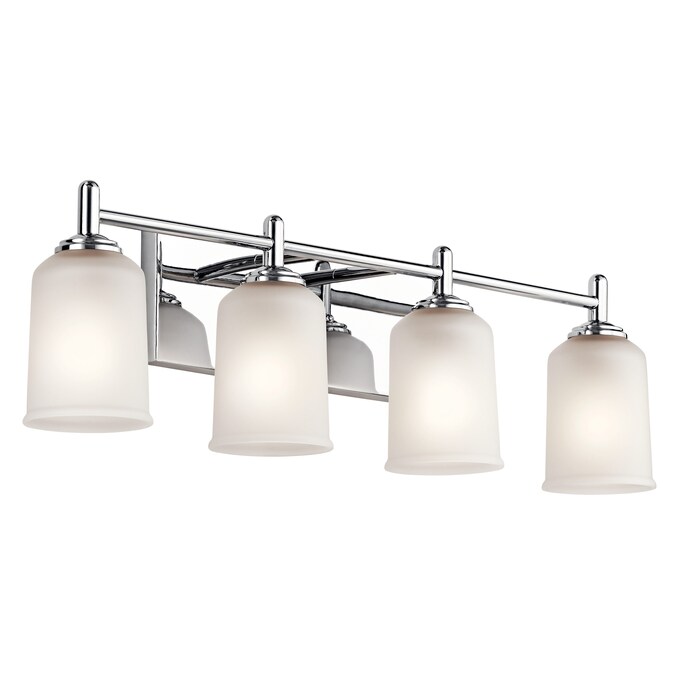 The Shailene™ 29.5-in 4 light vanity light features a classic look with its clean lines in Chrome finish and satin etched glass. The Shailene vanity light works in several aesthetic environments, including traditional and transitional. Warranty is one (1) year from the date of purchase. Cleaning instructions: Be certain the electric current is turned off before cleaning. Clean metal components with a soft cloth moistened with a mild liquid soap solution. Wipe clean and buff with a very soft dry cloth. Under no circumstances should any metal polish be used, as its abrasive nature could damage the protective finish placed on the metal parts. Never wash glass shades in an automatic dishwasher. Instead, line a sink with a towel and fill with warm water and mild liquid soap. Wash glass with a soft cloth, rinse and wipe dry.