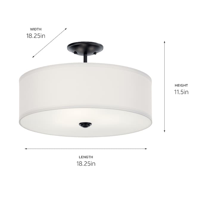 The Shailene 18.25 inch 3 light round semi flush features a classic look with its clean lines in Black finish and satin etched white diffuser and micro fiber shade. The Shailene semi flush works in several aesthetic environments, including traditional and transitional. The Shailene Collection is safety rated cETLus dry for indoor dry spaces. To clean, simply wipe with a damp cloth.