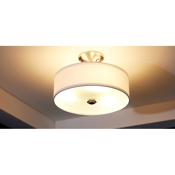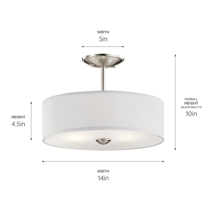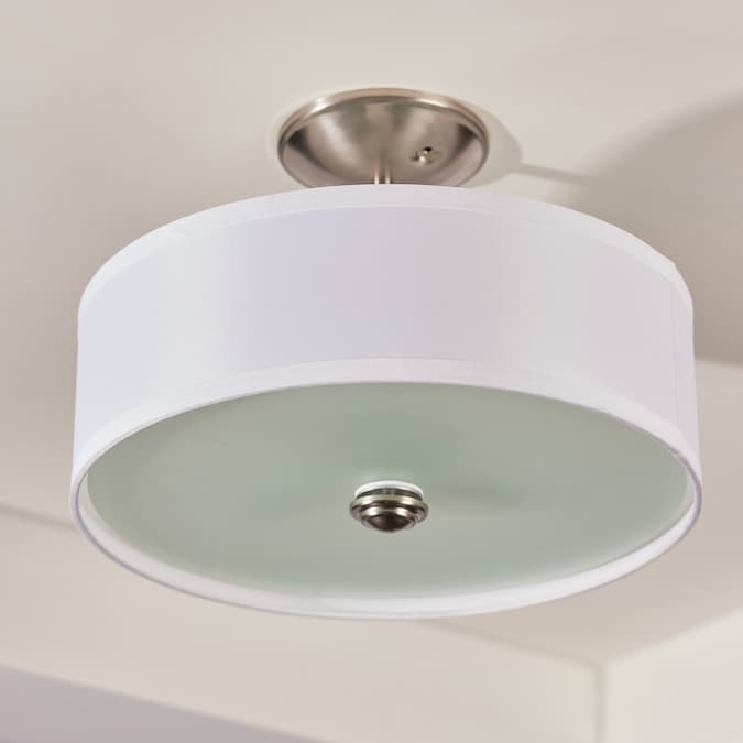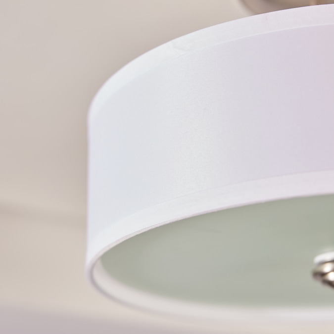 The Shailene™ 14-in 3 light round semi flush features a classic look with its clean lines in Brushed Nickel finish and satin etched white diffuser and micro fiber shade. The Shailene semi flush works in several aesthetic environments, including traditional and transitional. Warranty is one (1) year from the date of purchase. Cleaning instructions: Be certain the electric current is turned off before cleaning. Clean metal components with a soft cloth moistened with a mild liquid soap solution. Wipe clean and buff with a very soft dry cloth. Under no circumstances should any metal polish be used, as its abrasive nature could damage the protective finish placed on the metal parts. Never wash glass shades in an automatic dishwasher. Instead, line a sink with a towel and fill with warm water and mild liquid soap. Wash glass with a soft cloth, rinse and wipe dry.