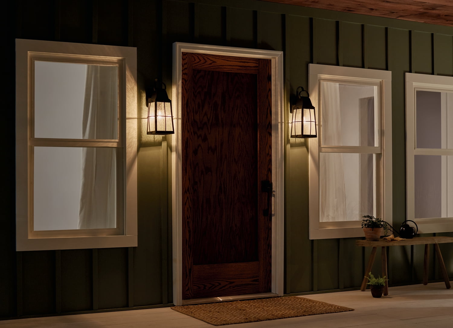 Aluminum construction ensures strength and durability Backplate allows for hassle-free installation Uses one 100-Watt incandescent medium-base A19 bulb (not included) ETL listed for use in wet locations Textured black finish offers an enhanced visual appeal Clear seeded glass diffuser provides bright illumination Ideal for patios, porches, and more