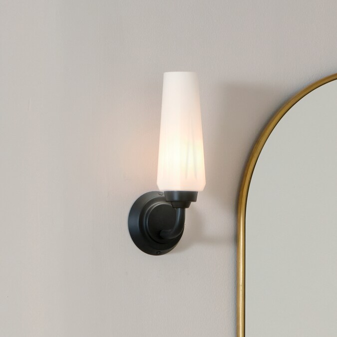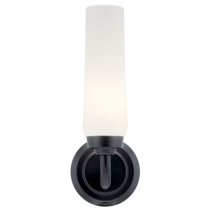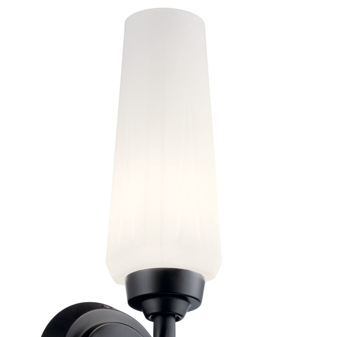 The Truby 11.5 inch 1 light wall sconce illuminates through an aerodynamic-inspired Satin Etched Cased Opal Glass shade. With a Black finish, this fixture pulls from yesterday to enlighten today. Truby is safety rated cETLus damp for indoor damp locations. To clean, simply wipe with a damp cloth.