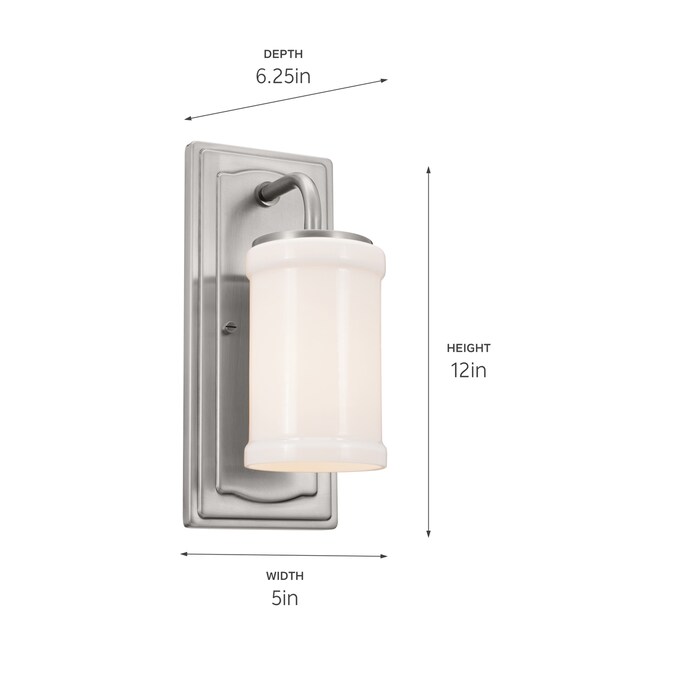 - Fixture measures 12.0-in height x 5.0-in width x 6.1-in extended