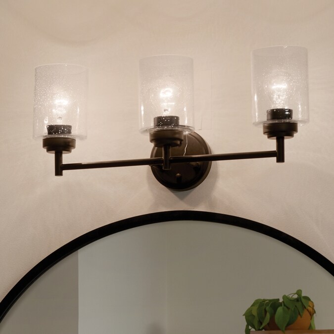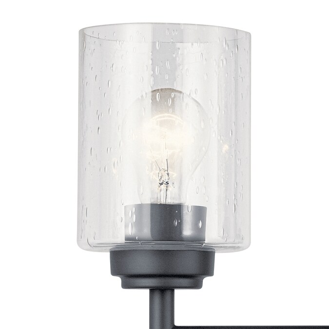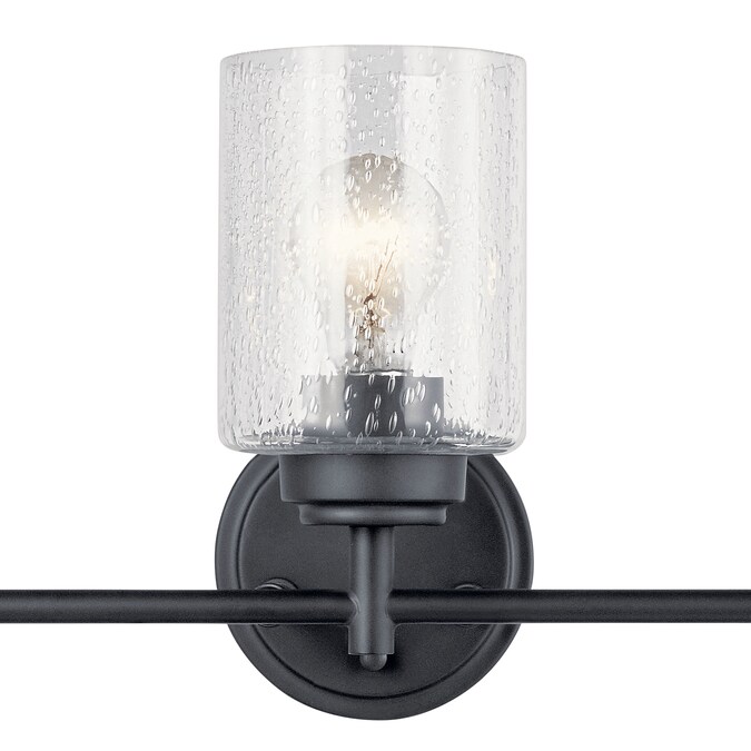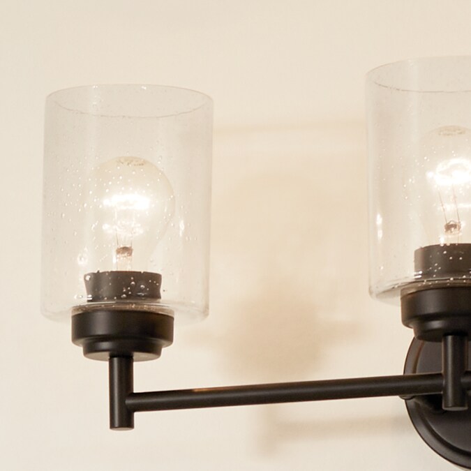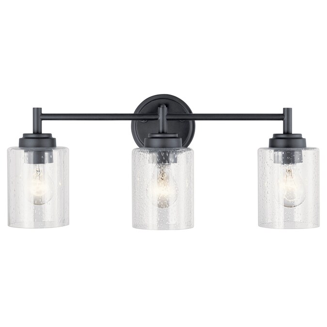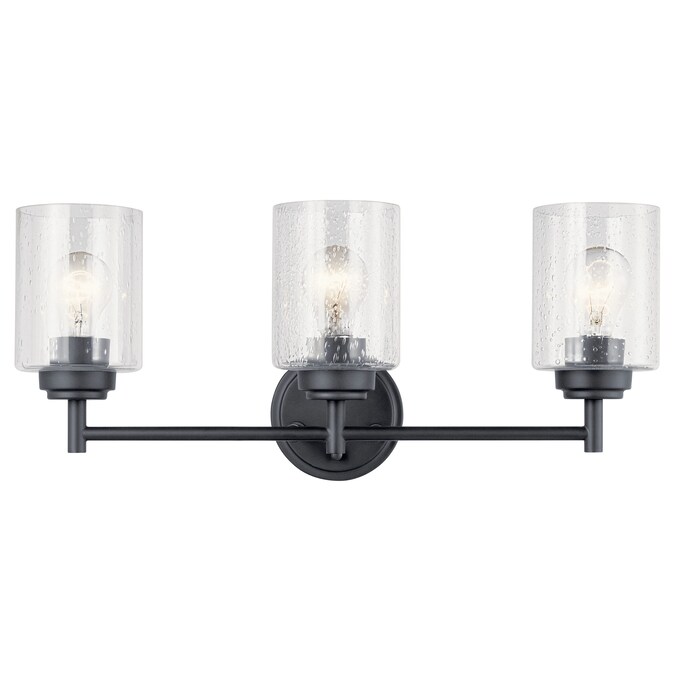 The Winslow 21.5-in 3 light vanity light features a classic look with its Black finish and clear seeded glass. Winslow vanity light is perfect in several aesthetic environments, including traditional and transitional. Warranty is one (1) year from the date of purchase. Cleaning instructions: Be certain the electric current is turned off before cleaning. Clean metal components with a soft cloth moistened with a mild liquid soap solution. Wipe clean and buff with a very soft dry cloth. Under no circumstances should any metal polish be used, as its abrasive nature could damage the protective finish placed on the metal parts. Never wash glass shades in an automatic dishwasher. Instead, line a sink with a towel and fill with warm water and mild liquid soap. Wash glass with a soft cloth, rinse and wipe dry.
