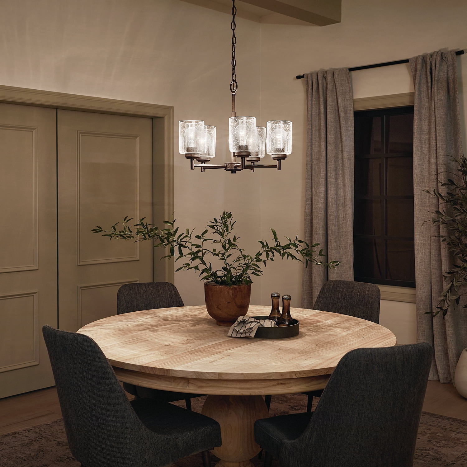 Kichler Winslow 5 Light Olde Bronze Contemporary Chandelier with Clear Seeded Glass