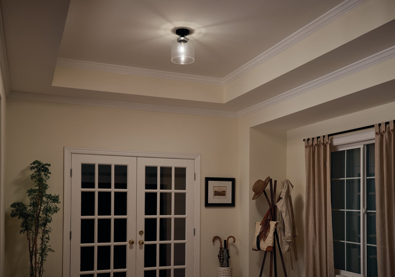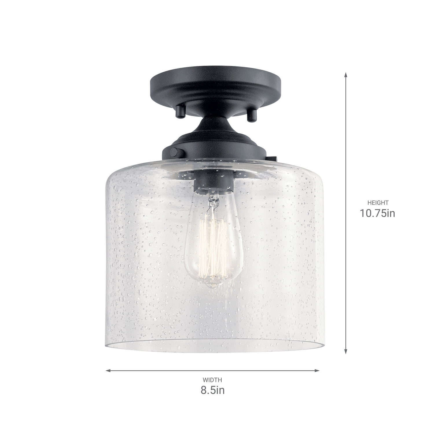 Kichler Winslow 8.5″ 1 Light Black Semi-Flush Mount Light with Clear Seeded Glass