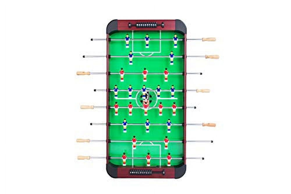 Table Dimension: 48″ L X 24″ W X 32″ H Table Weight: 53 lbs 1/4″ Thick Playing Field Convenient Foosball Ball Return on Each End of the Table 1-Goalie Design or 3-Goalie Design (Player Preference) 8 Durable 1/2″ Semi-Solid Stainless-Steel Chrome Plated Player Rods with 8 No-Slip Wooden Handles with Screws and 8 Rod Safety Caps 13 Red and 13 Blue Uniformed Foosball Men (Home & Away) 2 Soccer Style Foosballs High Quality indoor Foosball Table in the KICK Collection