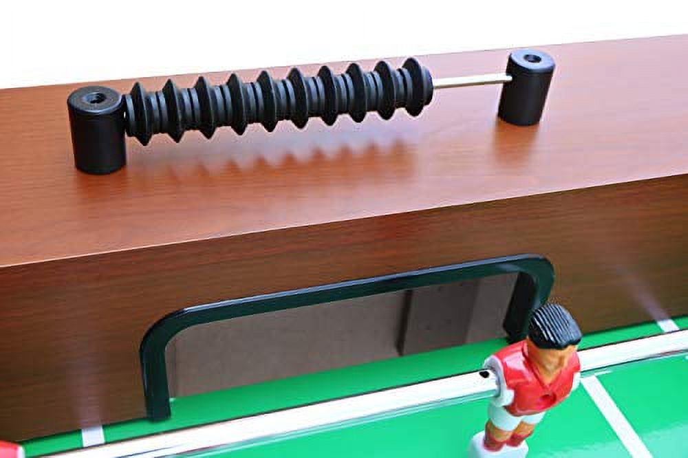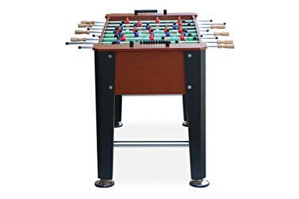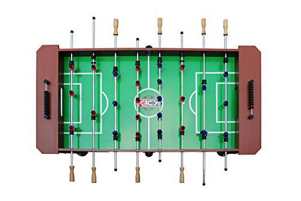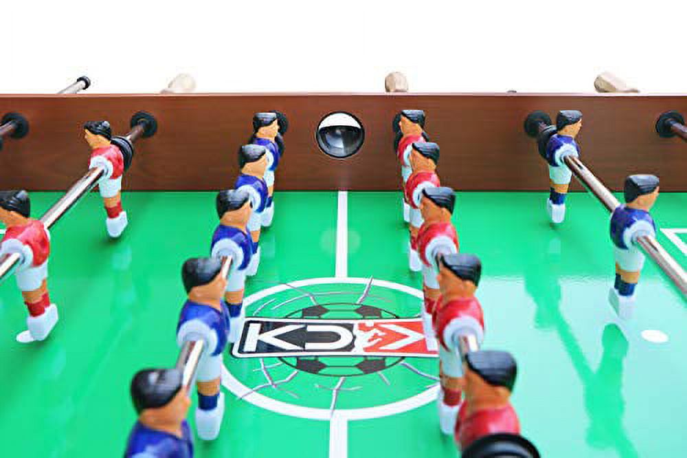 About KICK Foosball Tables Foosball is back! Our founder, a 25-year veteran of the sport & a recognized Foosball enthusiast, dreamed of a high-quality game table that other Foosball lovers could enjoy- without the high price. After years of research, design & development, KICK was born, creating a new standard in Foosball tables. KICK it old-school style & get your very own KICK Foosball Table today! About The KICK Venture Foosball Table With its dominant body & warm chestnut color, you can see why the KICK Venture 55″ Foosball Table demands its respect. The fine wood grain complements any decor that everyone in the family will love while the ebony legs add a touch of grandeur. This table is able to bring the excitement of the popular sport into the comfort of your own home at an affordable price! Go ahead & venture into the land of foosball, we promise you’ll never turn back. Technical Specifications: -Table Weight: 95 Lbs -Premium Bearings -1/2″ Thick Playing Field -5” Sturdy Leg Levelers with Skid Stop Bottom -Convenient Ball Return on Each Side of Table -Slide Scoring Mounted On Each End of Table -1-Goalie or 3-Goalie Design (Player Preference) -8 Durable 1/2” Semi-Solid Stainless Steel Chrome Plated Rods -2 Official KICK Foosballs & 2 Soccer Foosballs -13 Red & 13 Blue Uniformed Players (Home & Away) -8 NoSlip Wooden Handles -Free & Fast Shipping -Lifetime Warranty (Only on New Tables Purchased From KICK) -Free Rod Lubricant (Upon Request & Shipped Separately, Contact KICK with your shipping address) Your 100% satisfaction is our #1 priority. If there is anything we can do to improve your experience or if you have any questions, concerns, or are not 100% satisfied please call KICK Foosball now & we will do everything to make it right. Remember all KICK tables have a LIFETIME warranty on all parts, so rest assured you’re covered!