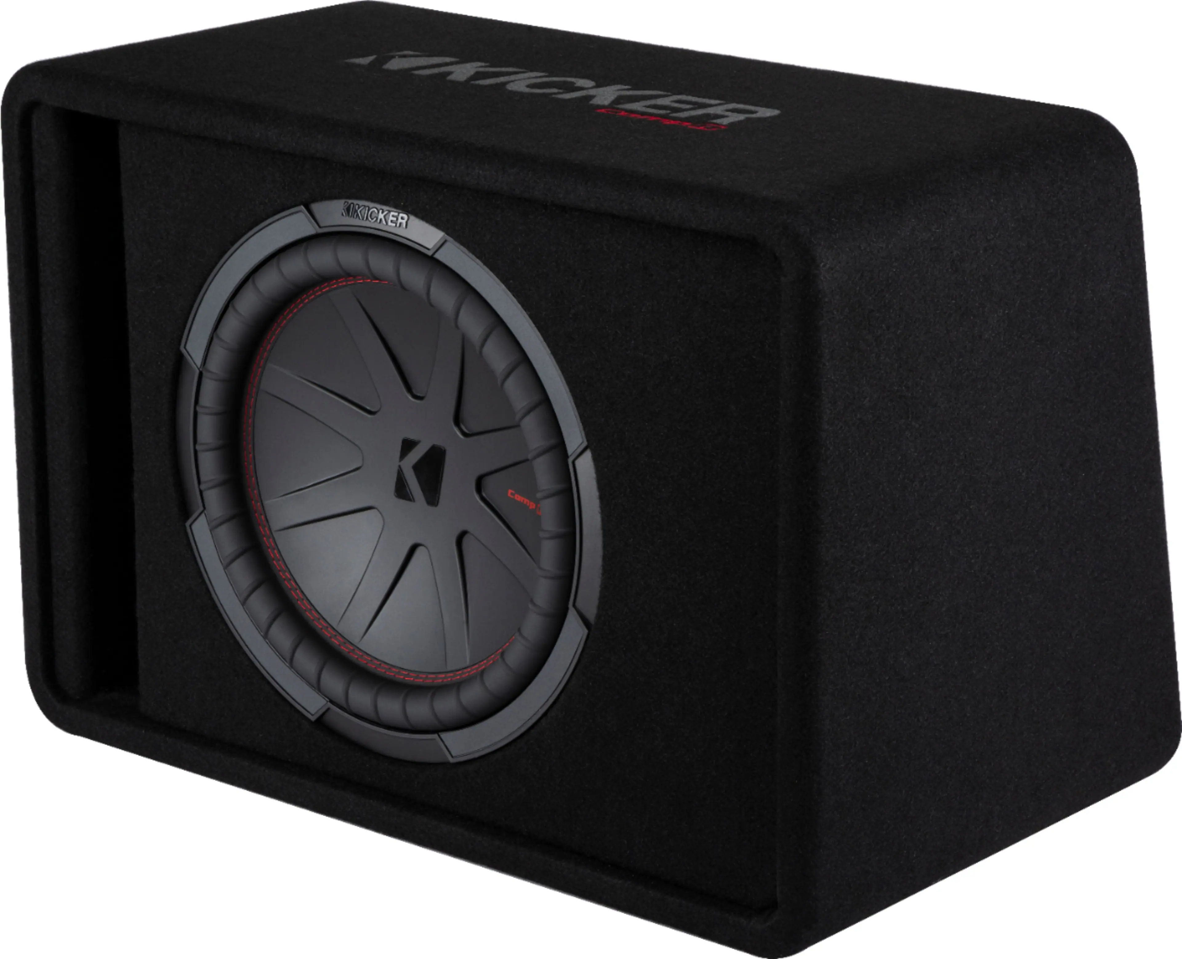 Pump up the bass with this CompR 12-inch subwoofer enclosure. This setup features Kicker’s 12-inch, 2-ohm subwoofer installed in a carpeted, black MDF box. The enclosure also features a double-stacked magnet and internal bracing for secure operation. This CompR 12-inch subwoofer enclosure operates on 500W of power and can produce 1000W of peak power.