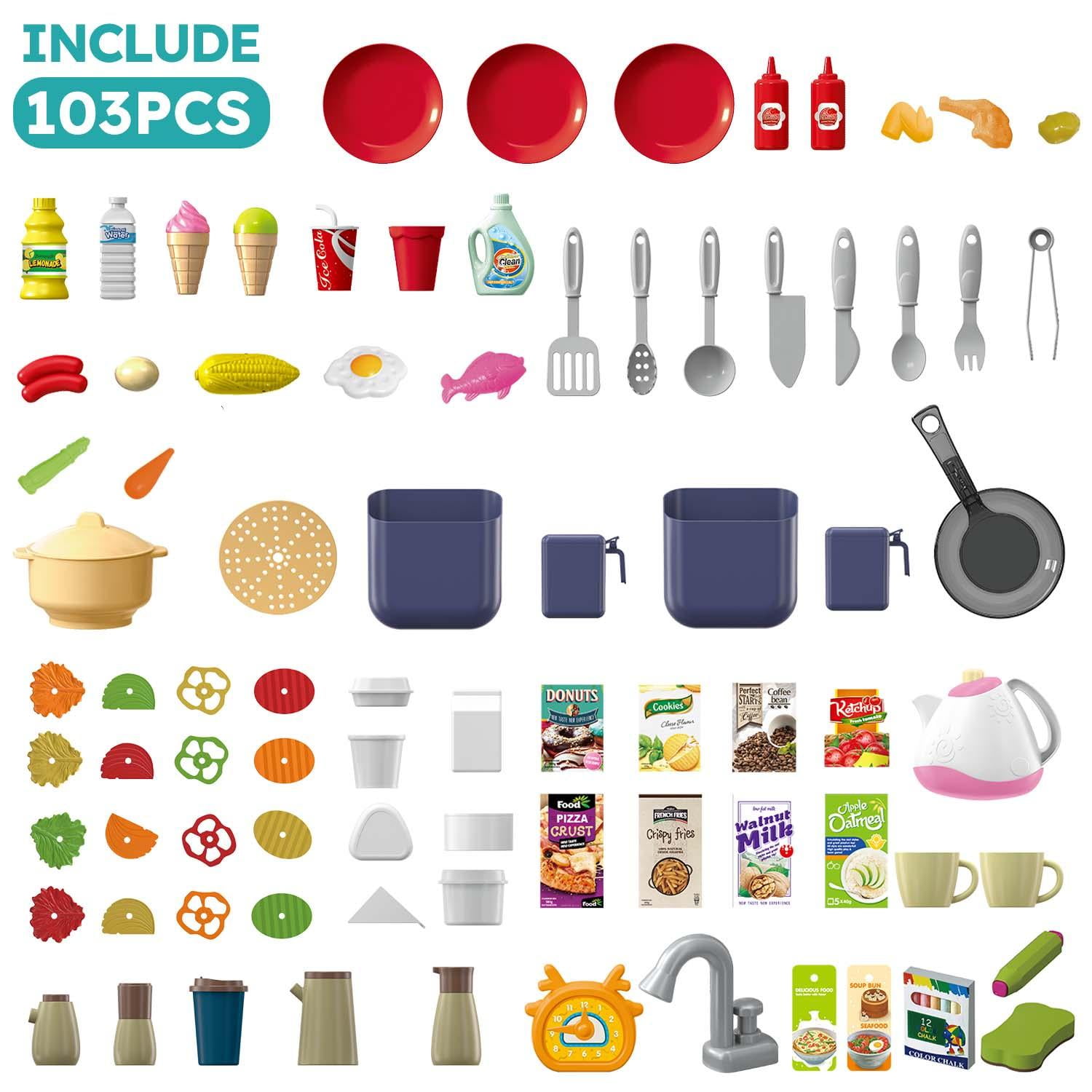 Kid Odyssey 41 inch Play Kitchen Set, 103 PCS Kids Kitchen Playset with Light, Sound, Sink& Water Spray,Pretend Play Food Toys for Boys Girls Ages 4-8