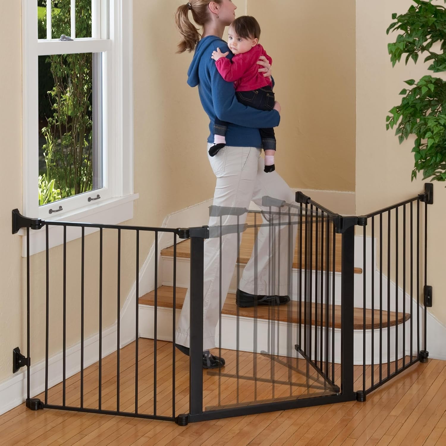 SAFE & SECURE – Keep your little one safe with a custom fit baby gate! Rotating joints and auto-close Magnet-Lock door (23″ wide opening) ensure a secure fit in any odd space (up to 86″ wide) including uneven hallways or stairs. CONVENIENT – The hold-open feature allows for easy pass-through, and the two-way door swings in or out for added comfort. BUILT TO LAST – This 29.5″ tall gate, constructed from sturdy steel, is perfect for doorways and stairs, providing long-lasting security for your child. ADAPTABLE & GROWS WITH YOUR NEEDS – Add optional sections (sold separately) to create a custom enclosure or freestanding play area. Quick-release hardware makes for easy removal when needed. FROM A LEADING COMPANY – KidCo has been a family-owned business for over 30 years, dedicated to innovative safety products. Starting with the first metal safety gate in the US, we now offer the ConfigureGate, Angle Mount Safeway gate, and more.