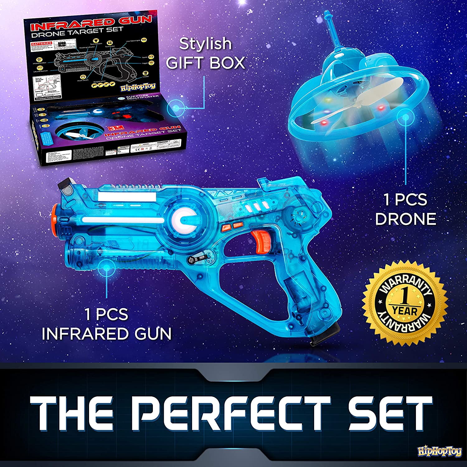 Kids Laser Tag Gun Game with Flying Toy Drone Target, Laser Shooting Game for Children with Fun LED Effects