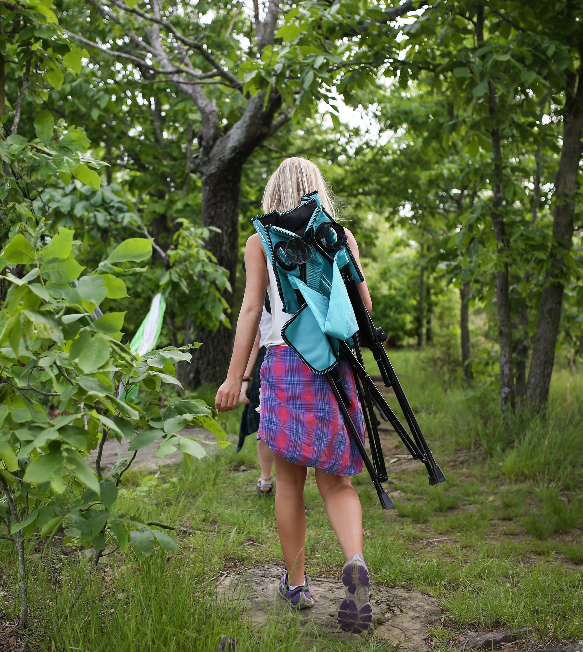 This portable Dual Lock chair gives you a premium seating experience with no-sag seating, durable diamond ripstop polyester, and breathable mesh on seat back The Dual Lock chair is perfect to take with you whether you are tailgating, camping, or watching your favorite sports teams Includes: 2 cup holders, organizer with zip & mesh pockets, carry strap attached to chair, and carry bag Supports up to 300 pounds Locks open for extra stability/ Locks shut for easy transport