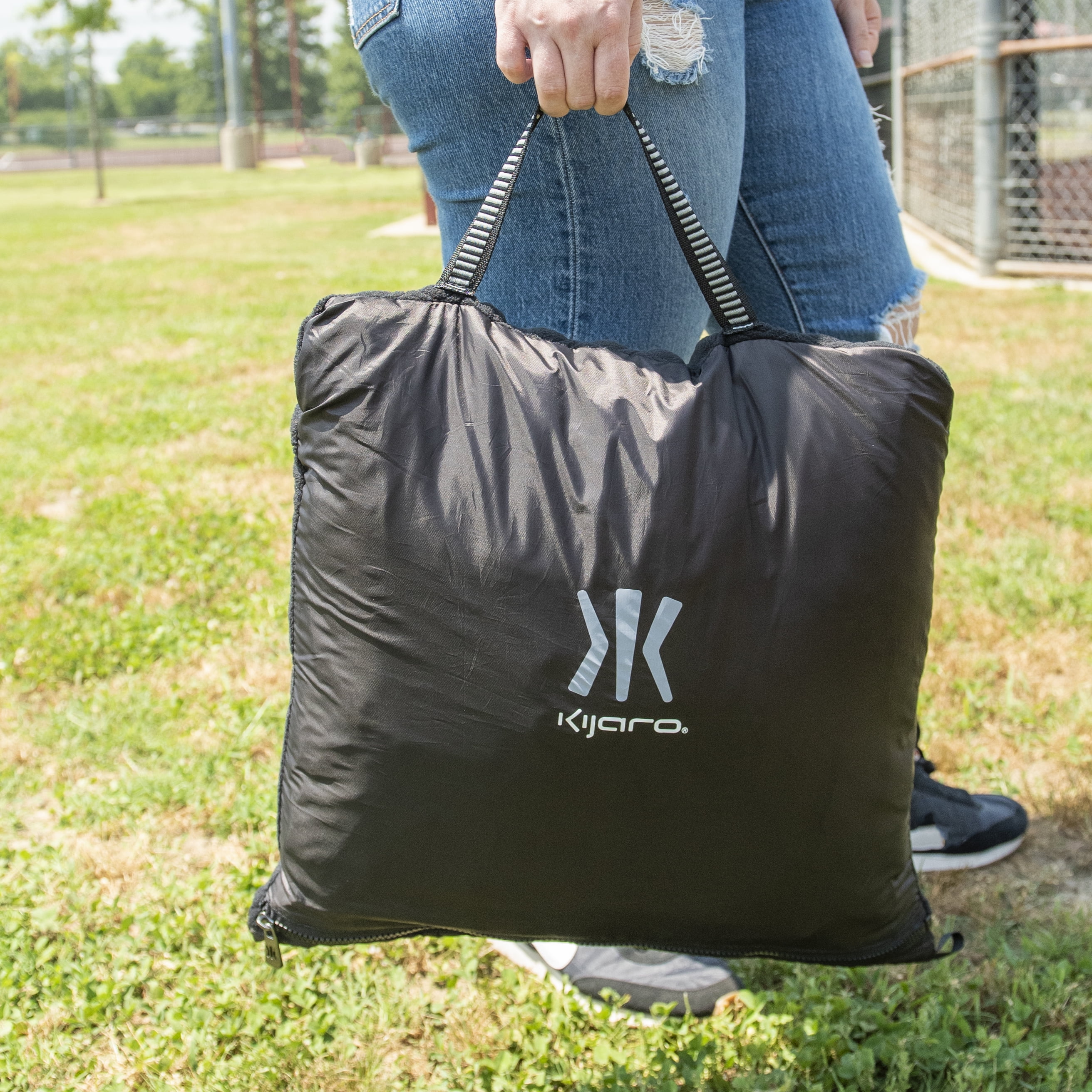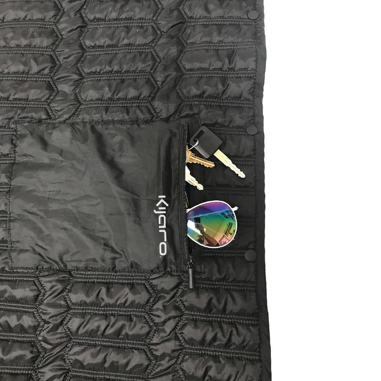 The Kijaro Vik Black Insulated Polyester Sports Blanket is the perfect multi-use sideline companion. Featuring signature Kijaro quilting and fleece lining this poncho will keep you warm and comfortable cheering on your favorite team. The size of this insulated poncho, blanket, and folding chair liner is the perfect size for your portable camping chairs and won’t drag the ground while in use. Built-in button snaps make it easy to adjust the length of this warm poncho to find the perfect length. This innovative poncho includes a zippered exterior chest pocket to store your keys or phone. The carry bag is built-in for easy portability, and it can also be used as a pillow or stadium seat. Don’t worry if it is a rainy day at the game this polyester insulated poncho and blanket is water repellent to keep you dry! Grab the Kijaro Insulated Sport Blanket to upgrade your game time!