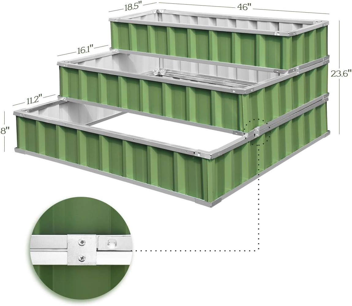 KING BIRD 3 Tiers 46″ x 46″ x 23.6″ Raised Garden Bed Dismountable Frame Galvanized Steel Metal Patio Garden Elevated Planter Box for Vegetables Flowers Growing Green