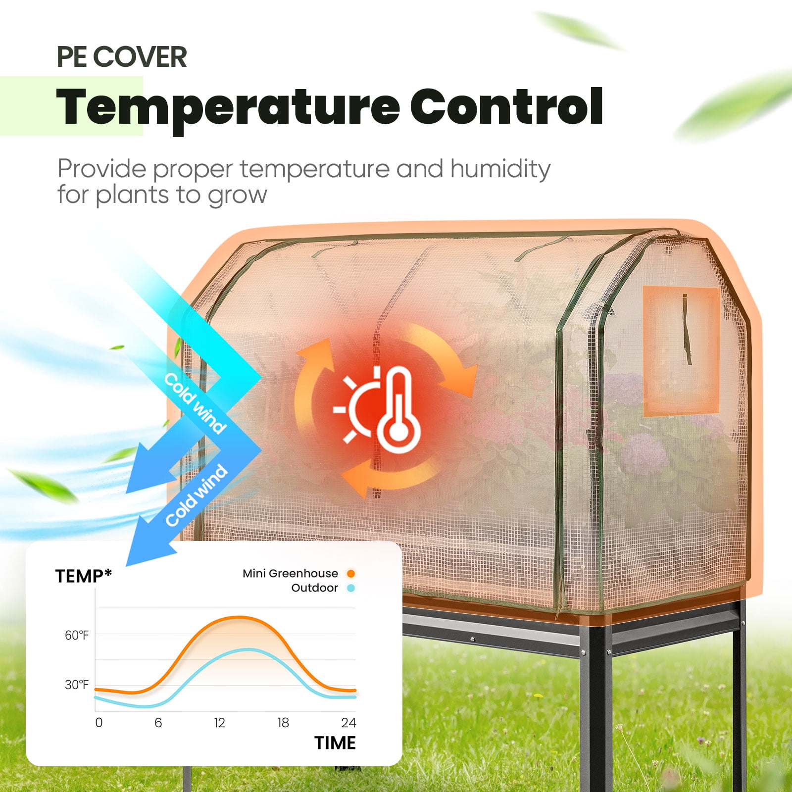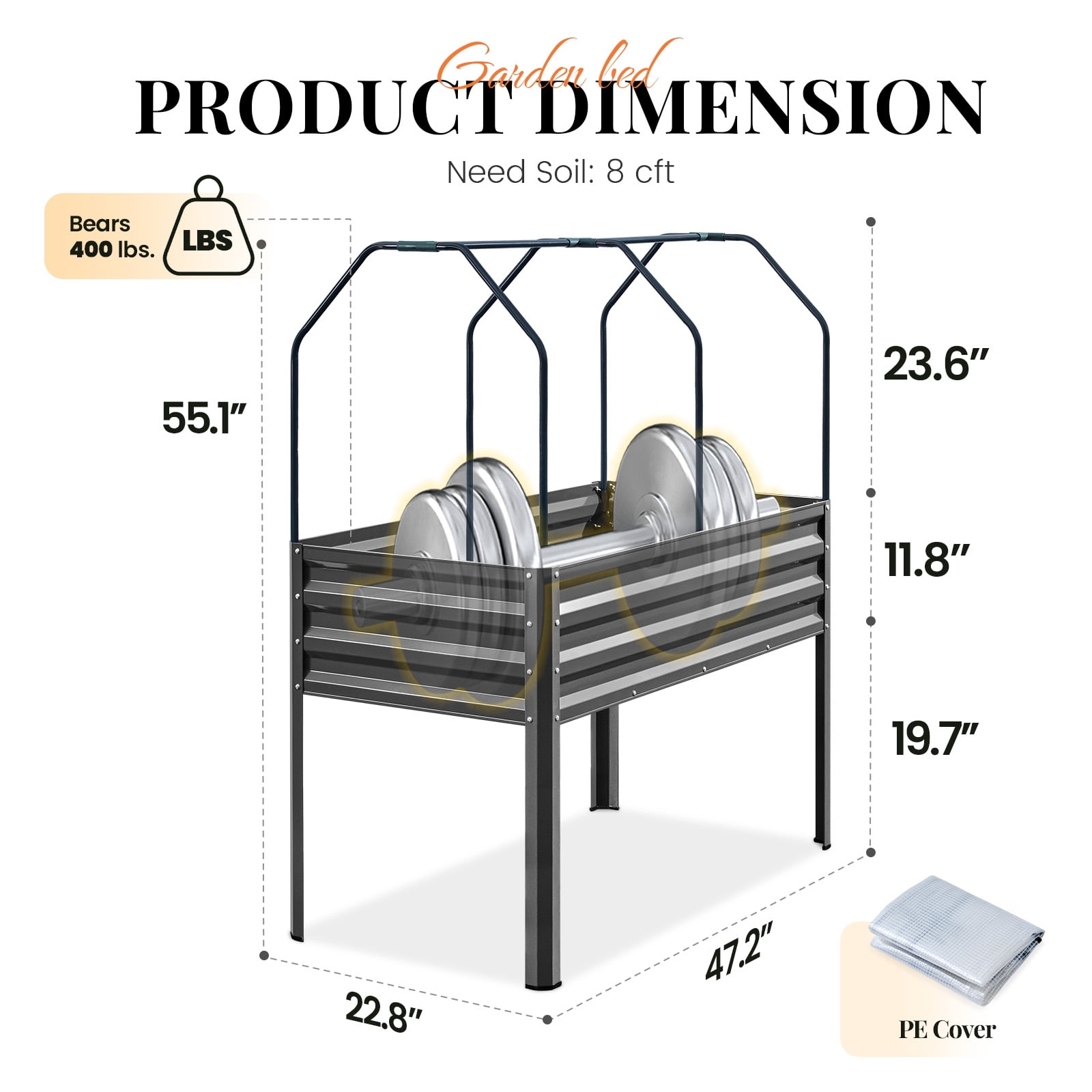 Raised Planter Box: The garden bed features a raised design, providing easy access and eliminating the need for bending or kneeling while gardening. This makes it comfortable for people of all ages and abilities. Integrated Greenhouse: The garden bed includes a built-in greenhouse, allowing you to create a controlled environment for your plants. The transparent materials of the greenhouse let sunlight in while retaining heat and moisture, promoting optimal plant growth. It also comes with zipped doors and fasten clips for diversified uses. Galvanized Steel Legs: The sturdy galvanized steel legs provide stability and durability to the garden bed. They are designed to withstand various weather conditions and offer excellent corrosion resistance, ensuring long-lasting use. Anti-slip rubbers protect the plants and floor. Spacious Dimensions: With its generous dimensions of 47″×24″×56″ (20.5″ leg, 11.8″ bed, 24″ greenhouse), the garden bed offers ample space for growing a wide variety of plants, vegetables, herbs, and flowers. This size provides enough room to accommodate your gardening needs. Versatile and Space-saving: This dark grey garden bed is suitable for various environments, including urban gardens, balconies, patios, and small yards. Its elevated design saves space and makes it an ideal solution for those with limited outdoor areas.