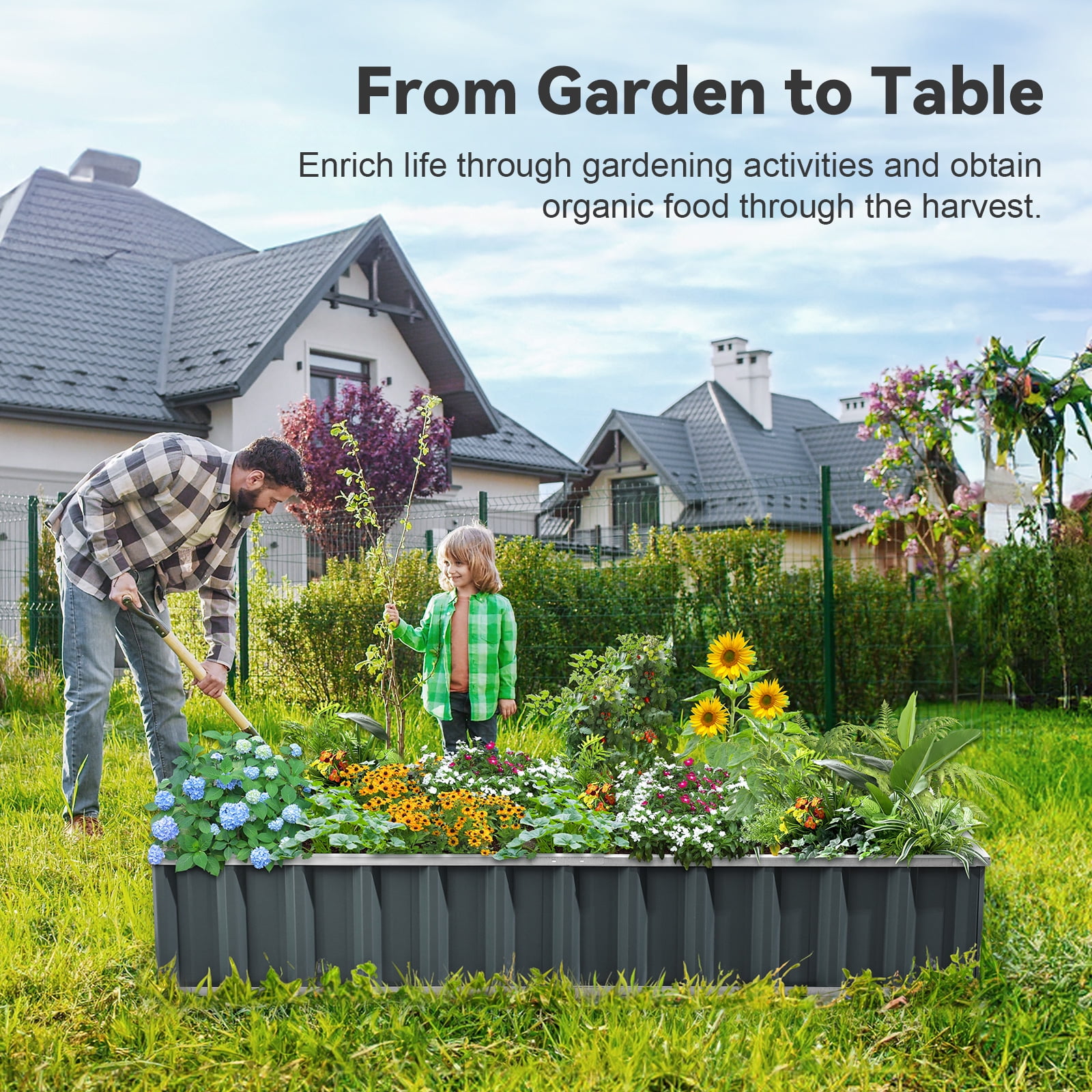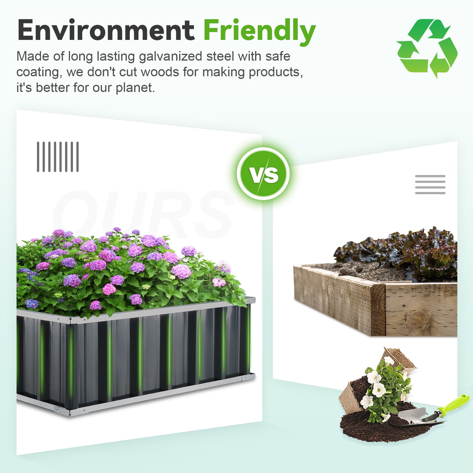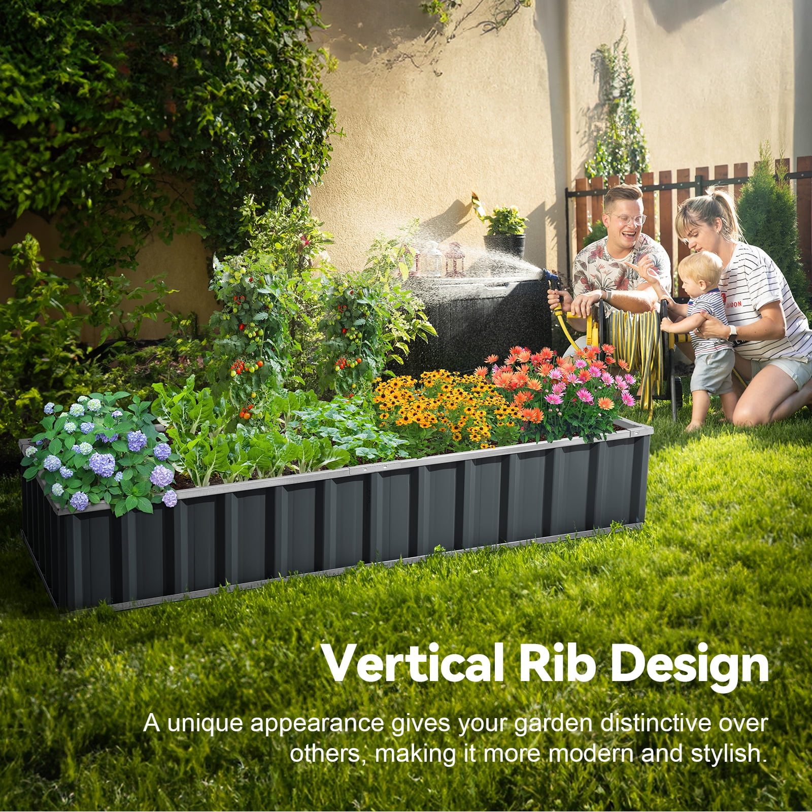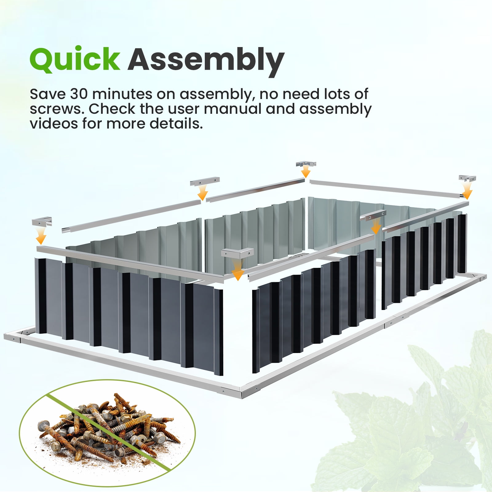 Please install according to the video attached in the gallery Extra-thick 2-Ply Reinforcement : Double card frames on the two sides of sheet make the garden bed more durably and stably; never worry about its distorted or collapsed and it presents much more beautiful design; Advanced Installation Design : Patent of this new installation design gives you a superbly convenient installation procedure; you just need piece together the card frame and sheet; a firm garden bed will present to you; Multilayer Galvanized Paint : Upgraded multilayer galvanized paint efficiently prevents rust and continues to beauty; also never worry about that pest and rain damage the wood garden bed; galvanized steel garden bed provides a lasting use and no discoloration; Vertical Stripe Updated Design : We combine the vertical stripe and the card holder design to improve the garden bed ability in bearing the soil and make the garden bed more textured and beautiful. This can prolong the service time of the garden bed. TWO-YEAR service: Update the newest assembly video. Show more details about installment, stability, and convenience. The most beautiful design of KING BIRD raised garden bed is not only about the convenient and fast installation without tools but also for its smart design to increase the loading ability and capacity vastly. TWO-YEAR service for the whole planter raised beds.