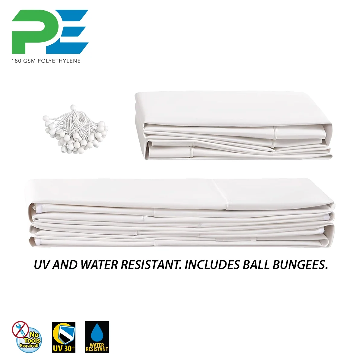Multi use: The side wall kit is perfect for enclosing your canopy. This can help protect your vehicle from some outdoor conditions such as sun, rain, and wind. Side Wall Enclosure Kit: This side wall kit is made 180gsm Polyethylene and will fit all frames that measure 10-Feet 8-Inches by 20-Feet. Includes (2) 20-feet long sidewalls with three screen windows, (2) 10-feet 8-inch-Wide Zippered End walls with Roll Up Doors and 50 Ball Bungees. Replacement Parts: King Canopy has replacement parts on hand ready to ship. Warranty: All our canopy components feature a 1-year limited warranty and are warranted to be free from defects in material and workmanship during this time frame. Damages from improper anchoring, strong winds, snow, ice, or rain are not considered defects. Nor does it apply to damage directly related to abuse or neglect whether accidental or deliberate. Since 1940, King Canopy has grown from a small family business to be a Leader in the Manufacturing of Shade and Shelter products all over the world. We are a dedicated team operating with traditional values and respect for the quality and integrity of each of our products. Our mission is to manufacture great products that will provide the highest level of protection from the elements. We Cover the World with Quality, Commitment, and Innovation!