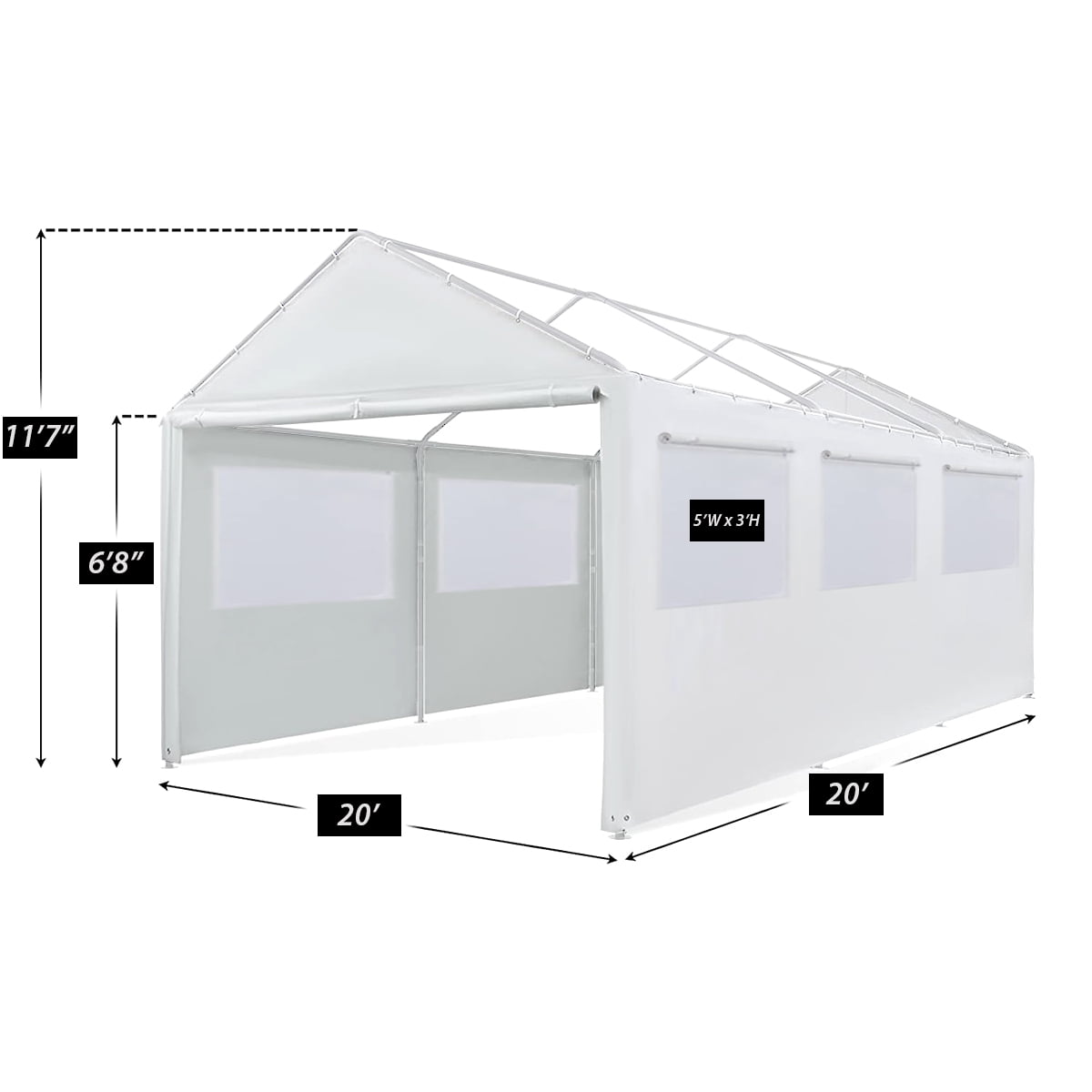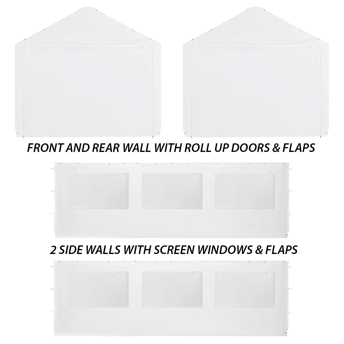 King Canopy side wall kits are the perfect accessory for the EX1220 measuring 20-feet by 20-feet canopy. They are used for privacy, storage, or simply just for wind / shade protection. Sidewall Kit accessory only, Canopy Frame and Cover not included. Includes (2) 20-feet long sidewalls with three screen windows, (2) 20-feet Wide Zippered End walls with Roll Up Doors and 50 Ball Bungees.