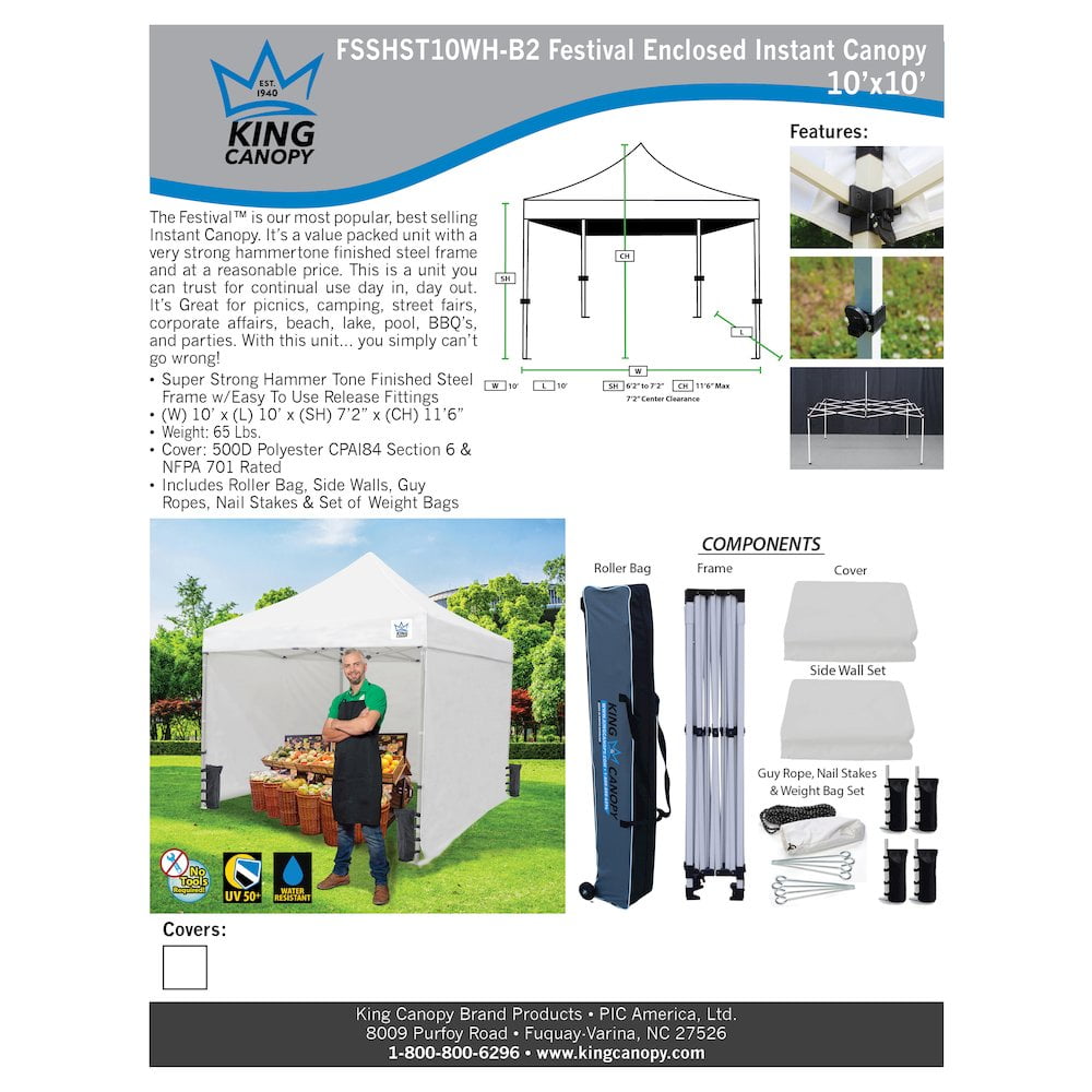King Canopy Festival 10’x10′ Instant Pop up Canopy , 1-Inch Steel Frame, White