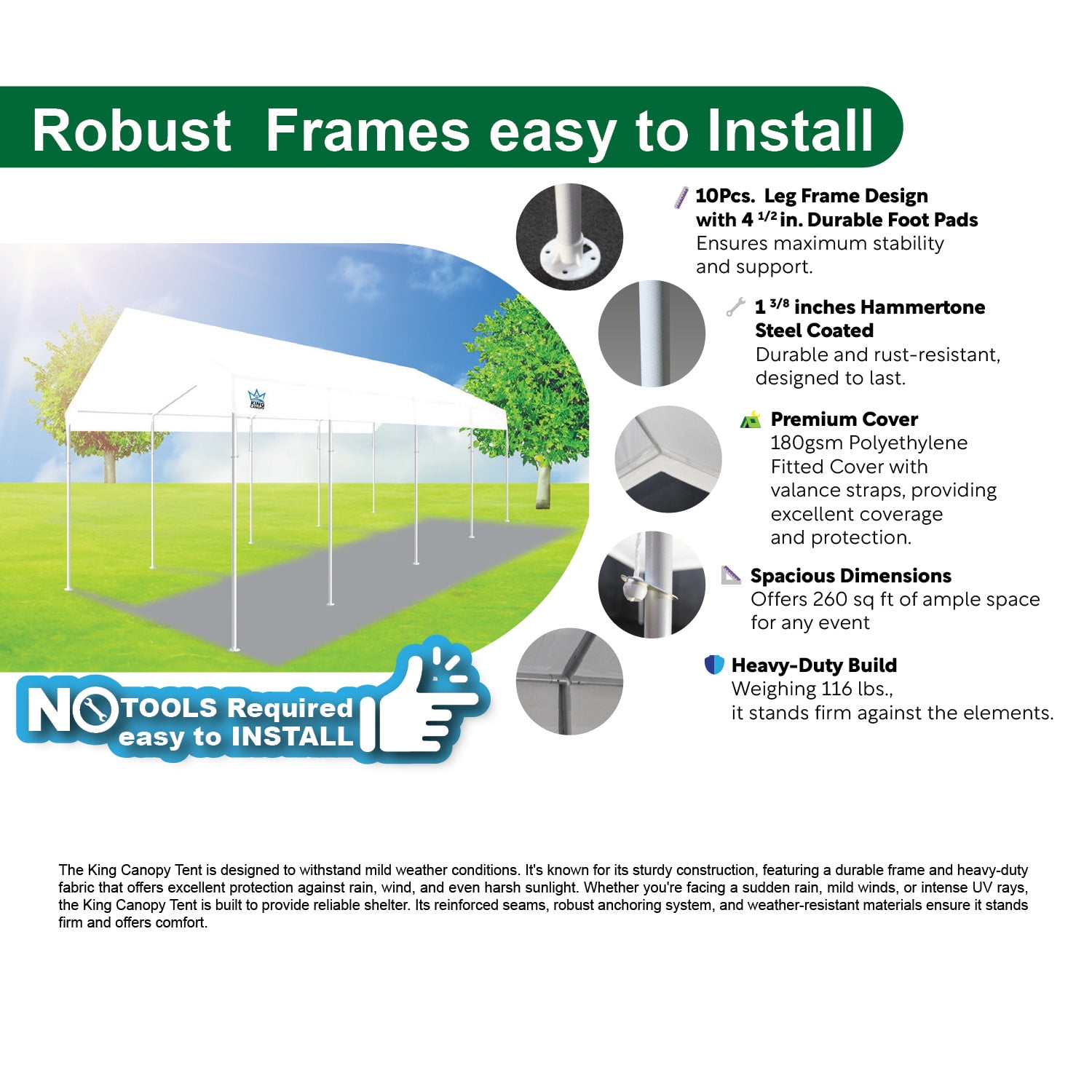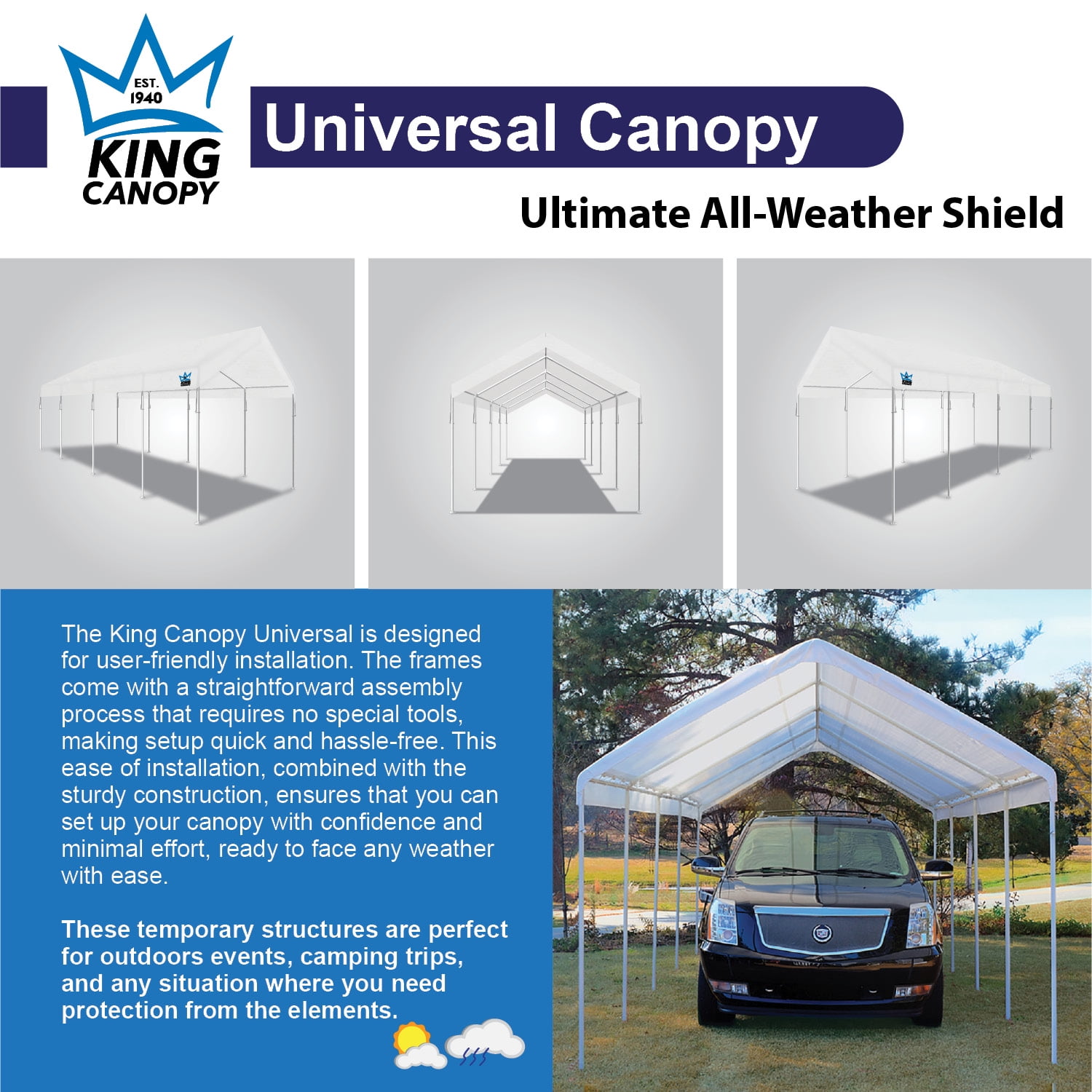 King Canopy Universal 10ft x 27ft, 1 3/8-inch Powder Coated Steel Frame, 10 Leg, 180gsm Polyethylene White Cover