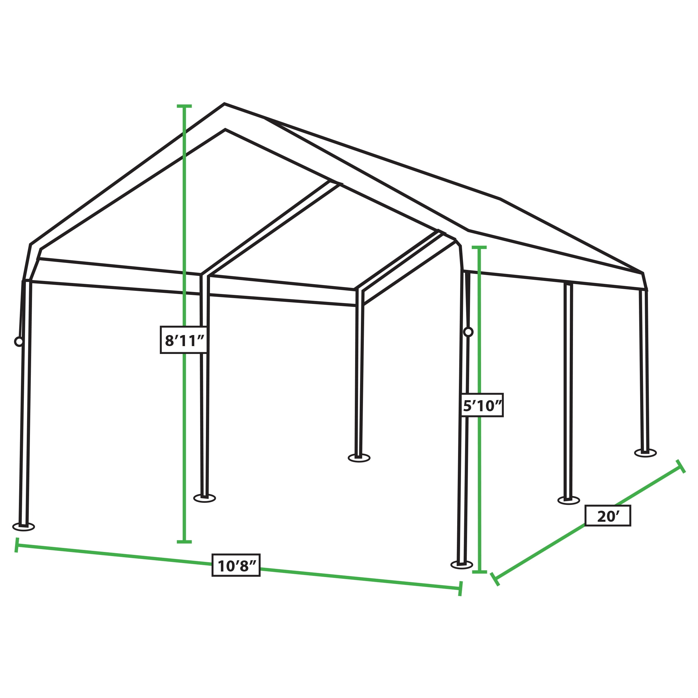 King Canopy Value King 10′ x 20′ Carport, 6-Leg, 1 1/4-inch Steel Frame, White