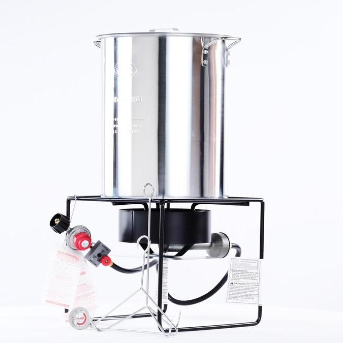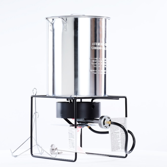 - Heavy duty welded 12in tall outdoor cooker with 38,000 BTU cast burner