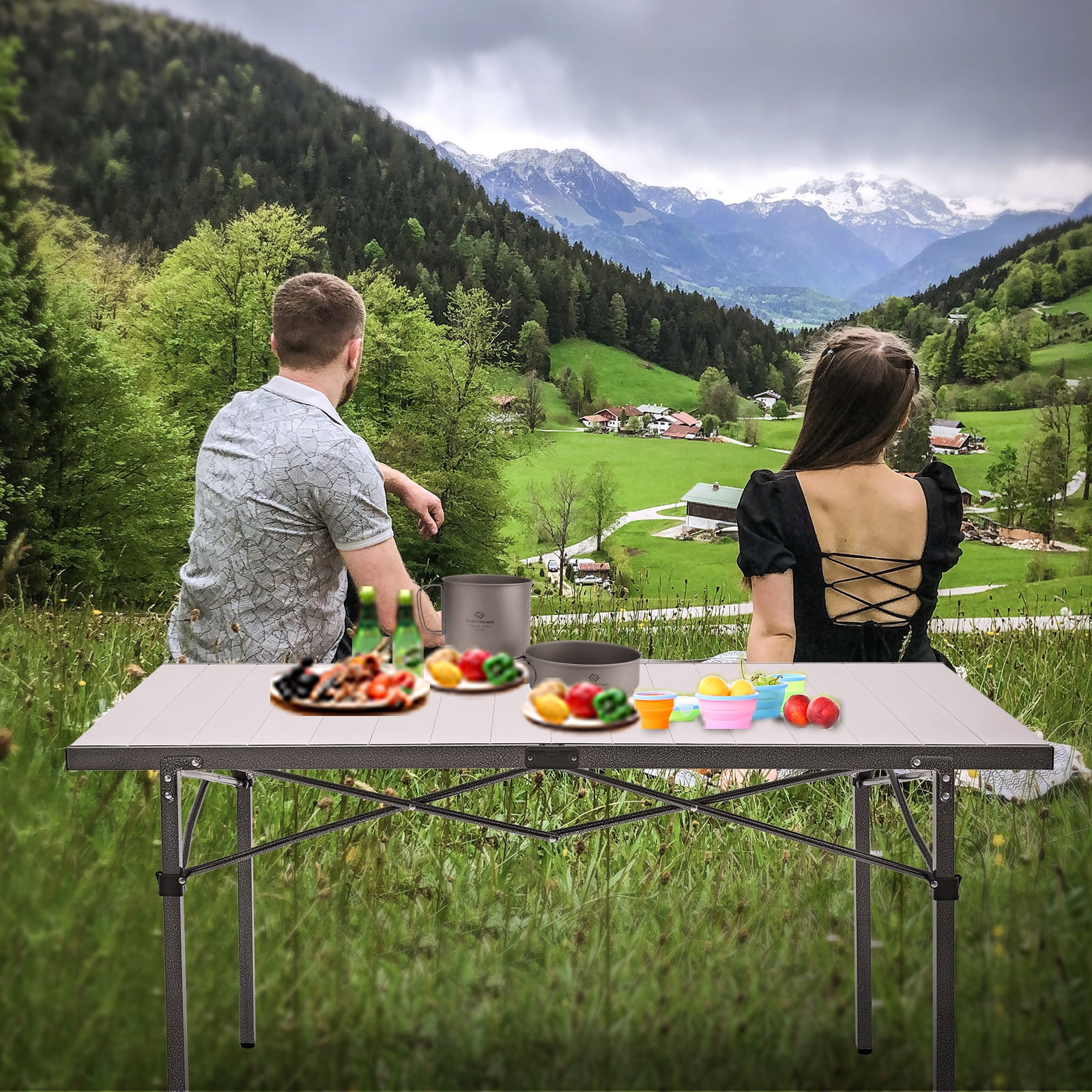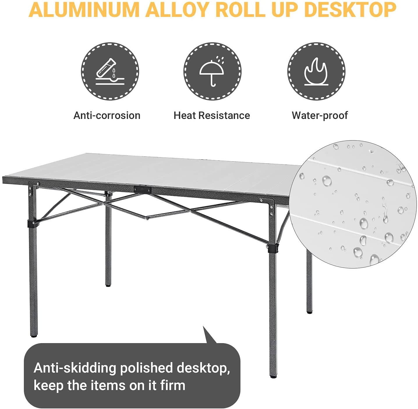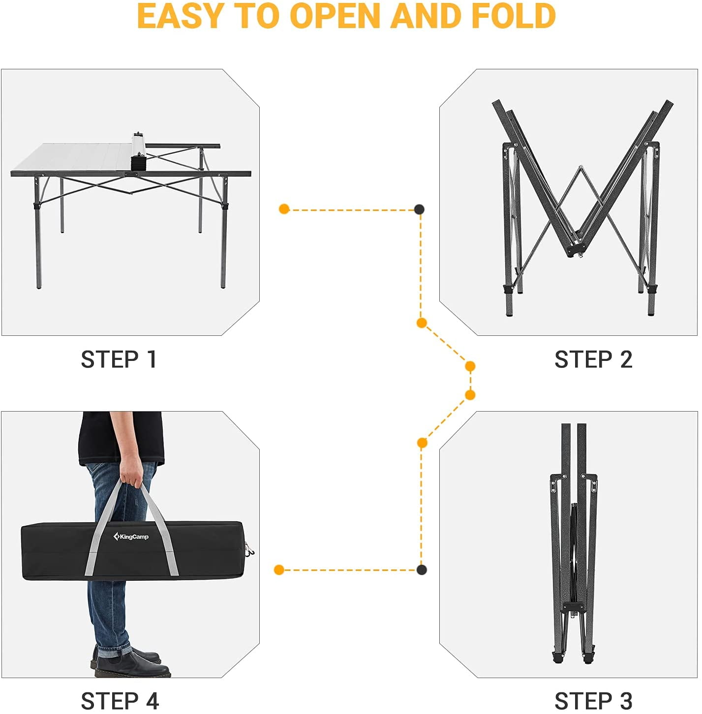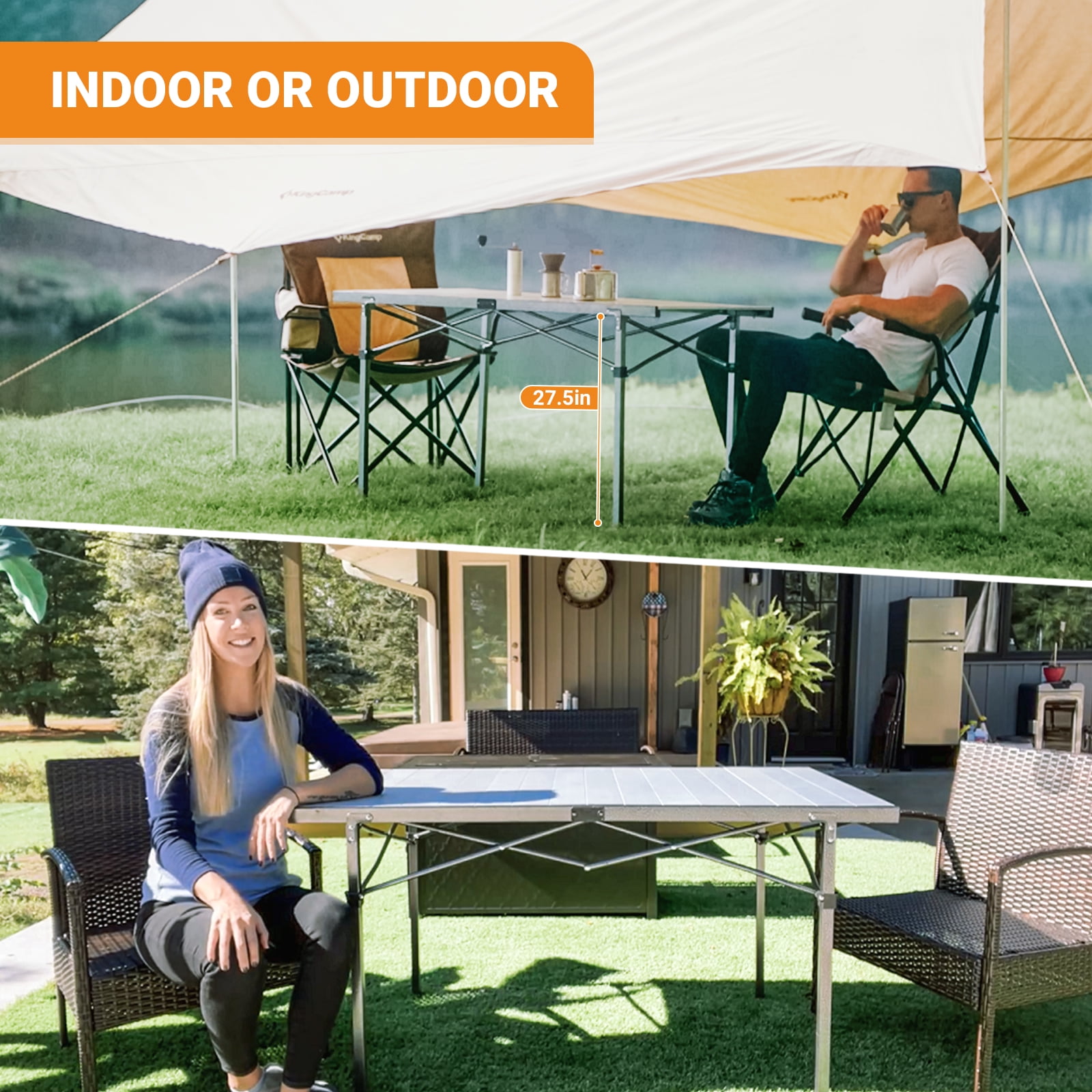 KingCamp Aluminum Roll-Up Camping Table for 4-6 People – Lightweight & Portable Design, Includes Oxford Cloth Zipper Storage Bag, Perfect for Outdoor Dining & Group Gatherings (Silver)