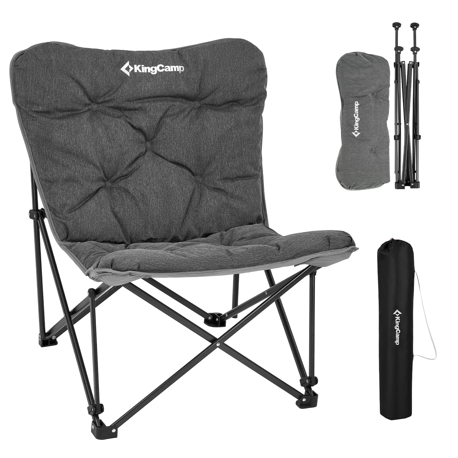 KingCamp Comfy Folding Chairs Oversized Butterfly Chair with Thick Padded Seats for Indoor & Outdoor, Support 300lbs, Grey