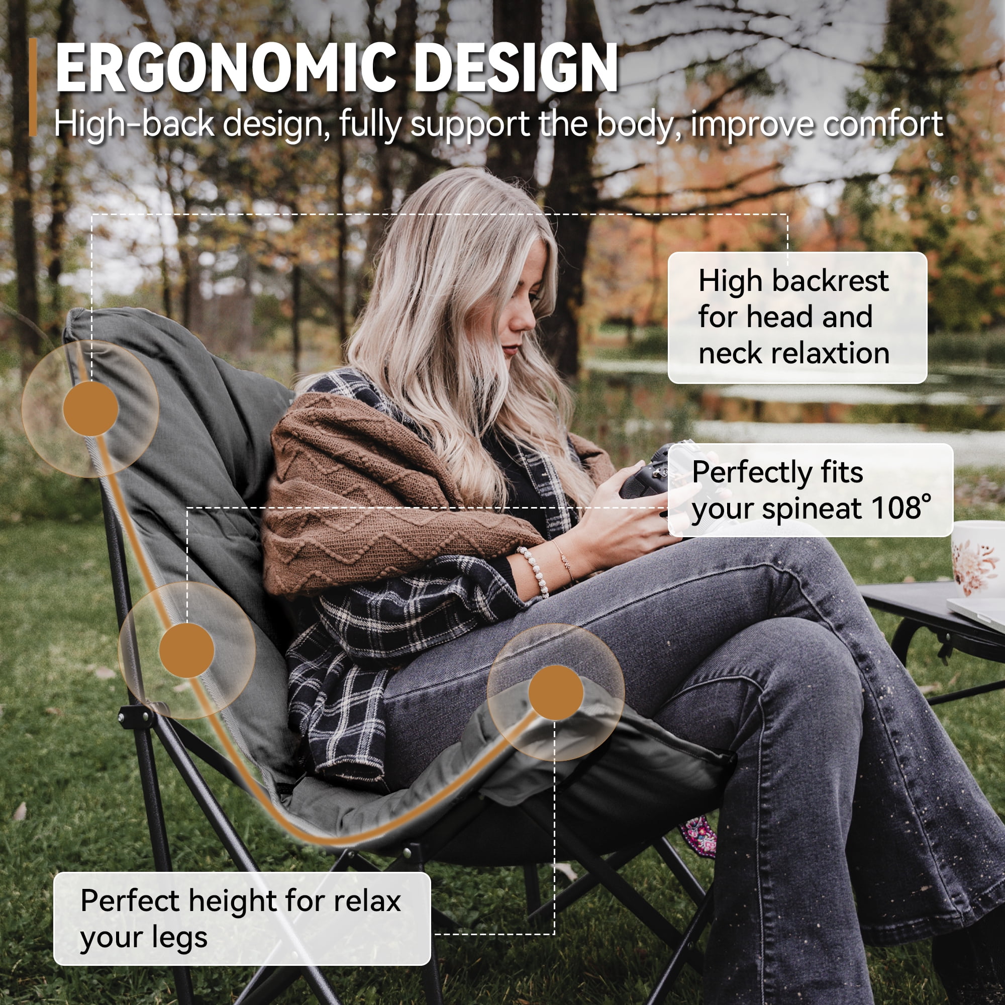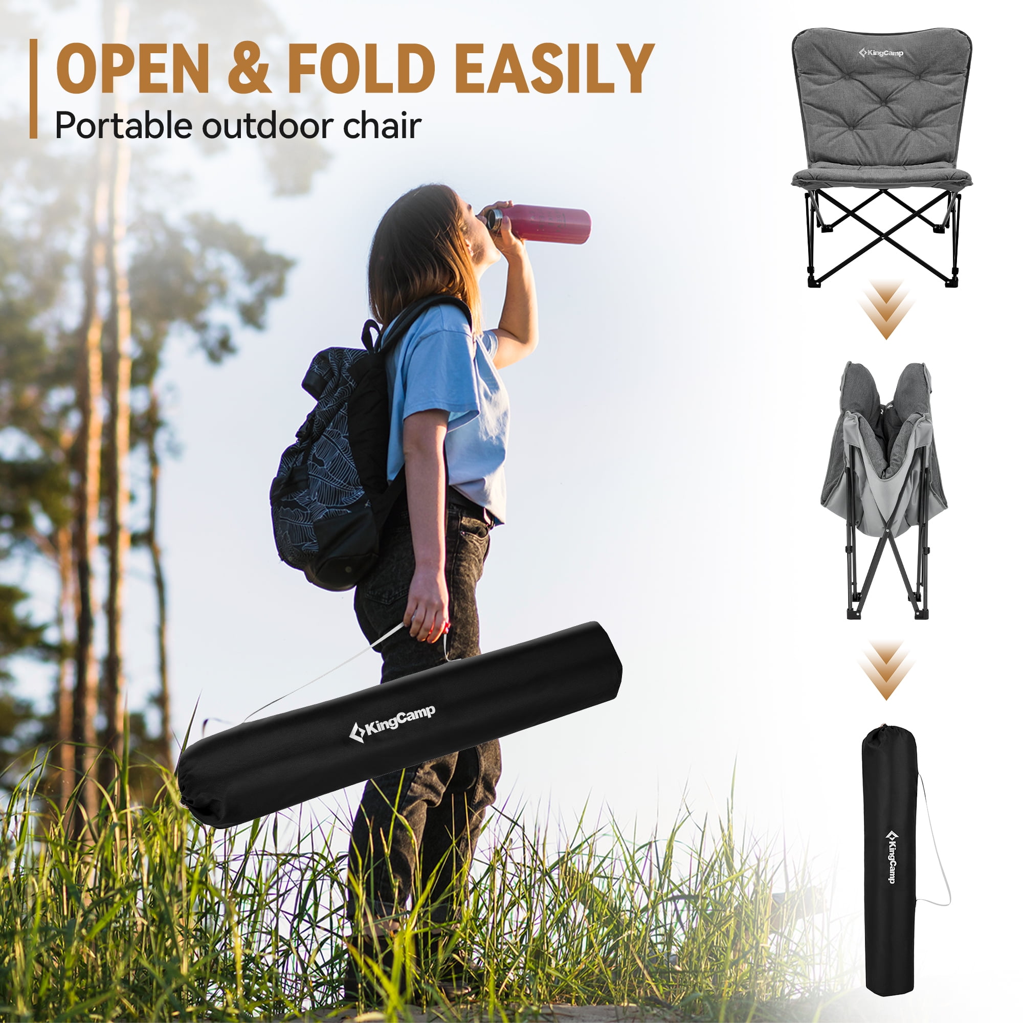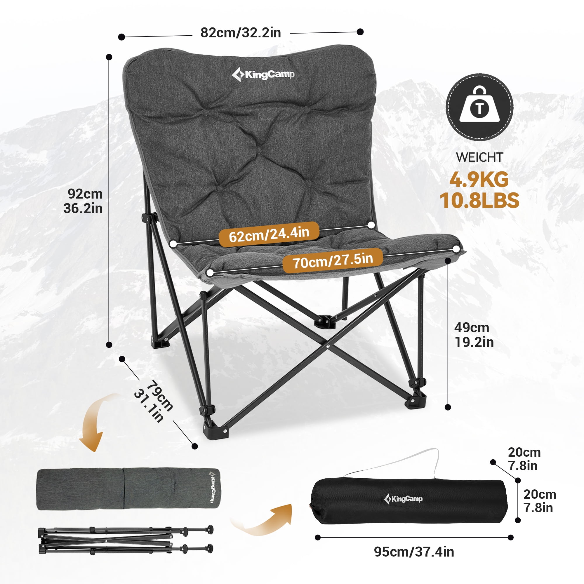 【Sturdy & Stable chair】 This butterfly lawn chair support 300lbs for a adult, weights only 10.8lbs. The frame is made of steel pipe, with cross triangle stable structural design and surface-resistant spray. Don’t worry about the chair rust, it is also durable than the most camping chairs. 【Ergonomic design 】 Our KingCamp chair with ergonomic design, thickened cotton filling cushion + high backrest + larger size: 32.2*31.1*36.2in offer additional comfort, allowing you to sit cross-legged or sideways, promoting relaxation while enjoying your camping experience. This sofa chair is perfect for outdoors and indoors. 【Easy to Setup】You can set up this butterfly chair in seconds, no tools needed. Just need to pop the outdoor chair open and attach the seat fabric. The chair and bracket can be separated, easy to carry. When you don’t use the camping chair, just fold it in the corner. And the detachable seat can be thrown directly into the washing machine for cleaning. Cleaning camping chairs is no longer a difficult task! 【Indoor or Outdoor】 This portable folding chair is perfect for family camping. The folding chair can be used not only as a camping chair, but also as a lazy sofa chair for indoor and bedroom. Our camping chair is perfect for camping, fishing, sporting events, lawns, gardens, yards, outdoor activities, and sunbathing outdoors or reading indoors. 【Satisfactory Service】The camping chair with a 12-month warranty, If any part of the chair is lost or damaged, please contact us promptly, our team will try our best to help you.