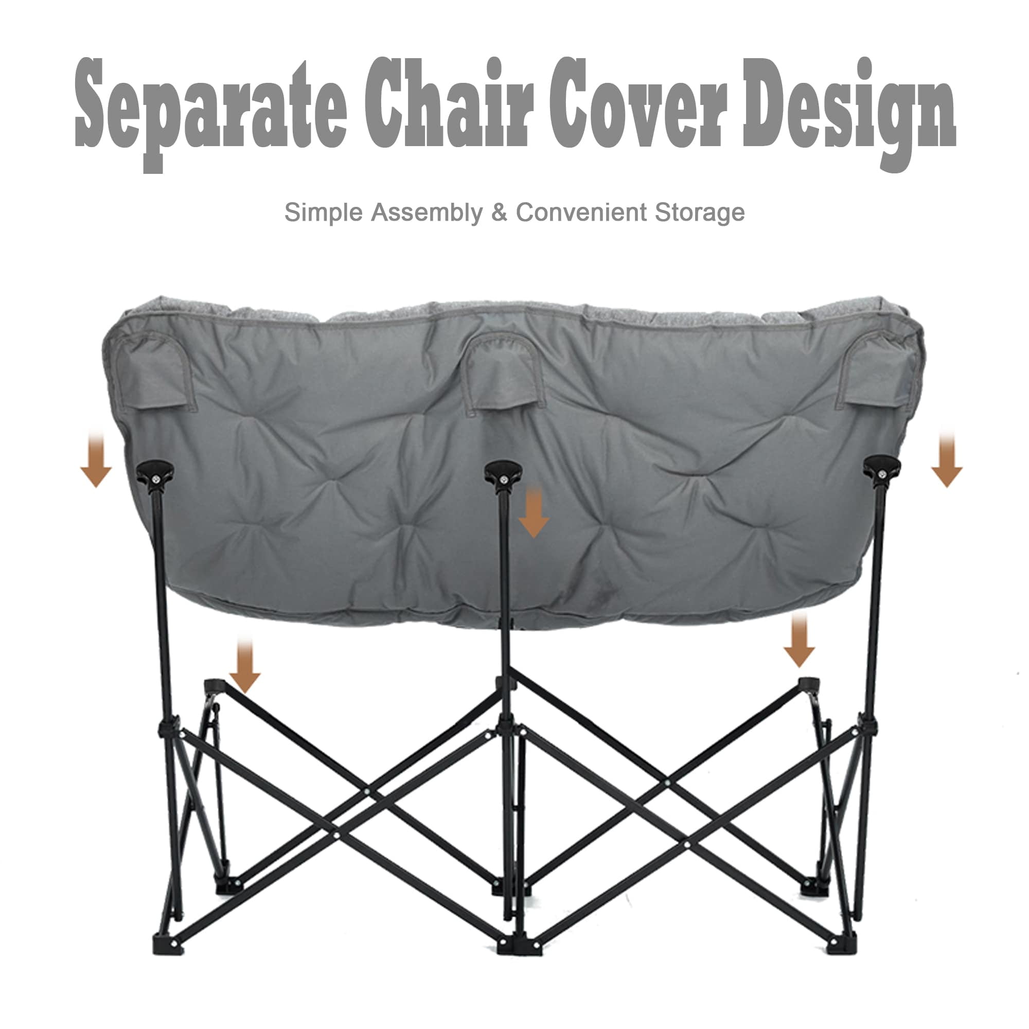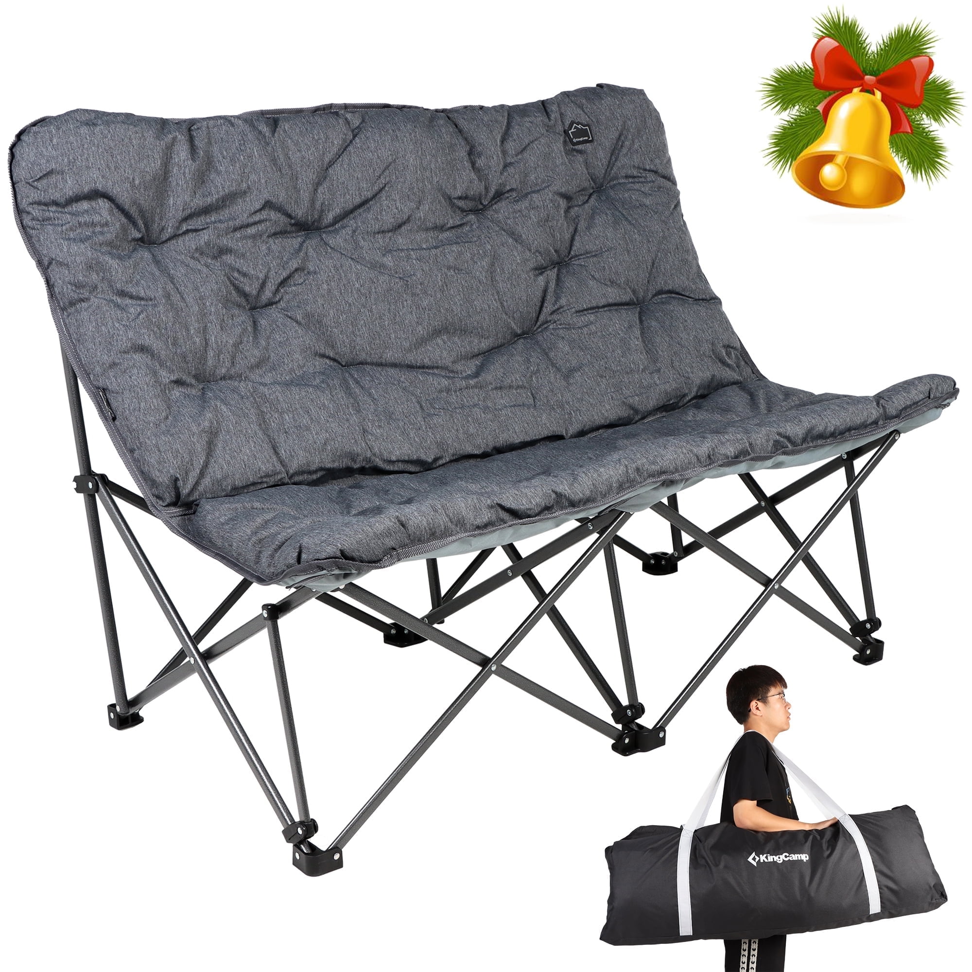 KingCamp Double Camping Chairs Clearance For Adults, Oversized Padded Loveseat Sofa Chairs, Folding Lawn Chair Support 600lbs, Grey