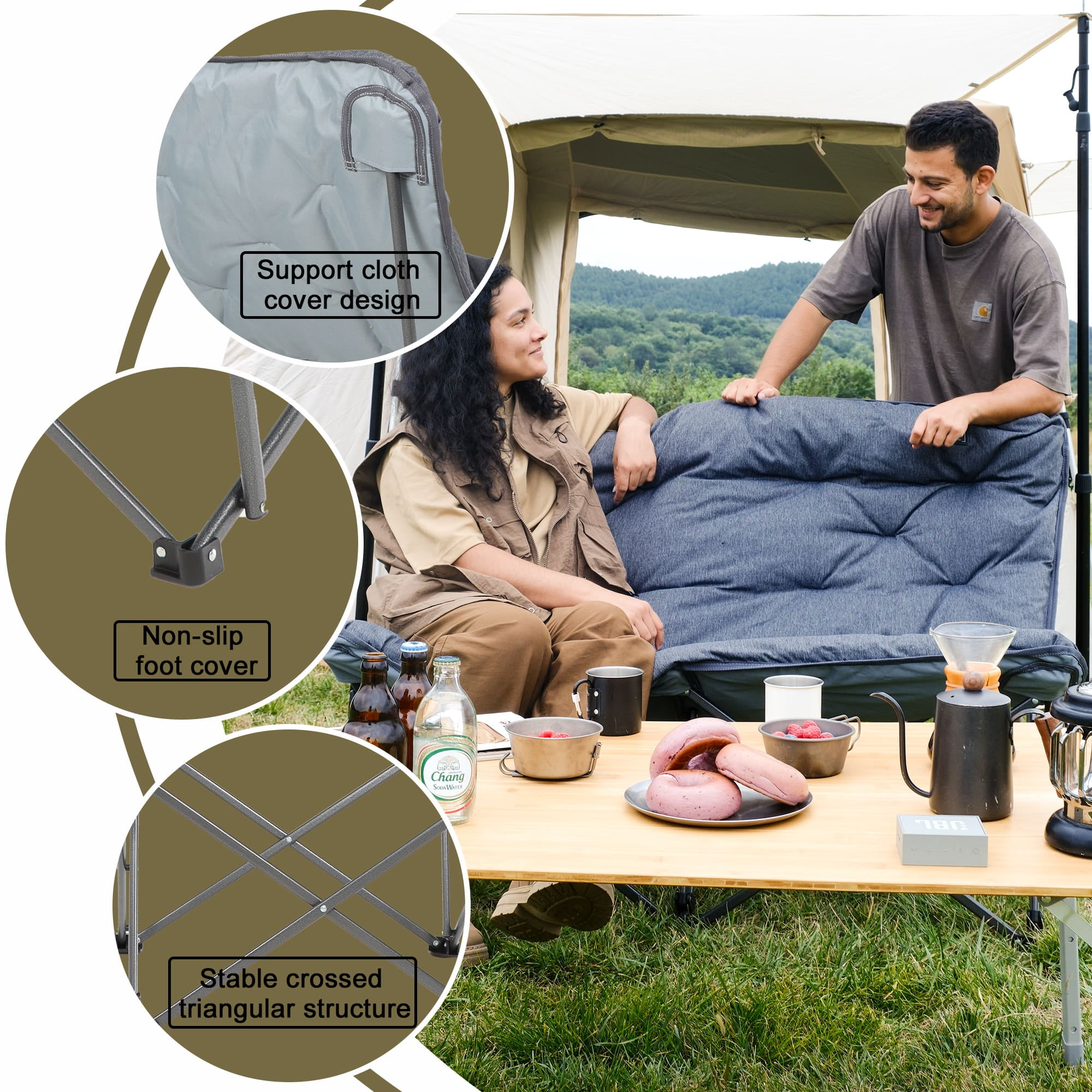 KingCamp Double Camping Chair For Adult, Oversized Padded Loveseat Sofa, Folding Lawn Chair Support 600lbs, Grey KingCamp outdoor butterfly camping chair is certified as very comfortable by professional organizations and a wide range of customers. We may not be the cheapest camping chair, but we can certainly make you feel comfortable. The outdoor chair with high backrest design provides fully support for your back and head; thickened cotton filling in the sofa chair more soft and comfortable, available both indoors and outdoors. The loveseat chair can be used not only as a camping chair, but also as a lazy sofa chair for indoor and bedroom for 2 adults. Our camping chair is perfect for camping, fishing, sporting events, lawns, gardens, yards, outdoor activities, and sunbathing outdoors or reading indoors.